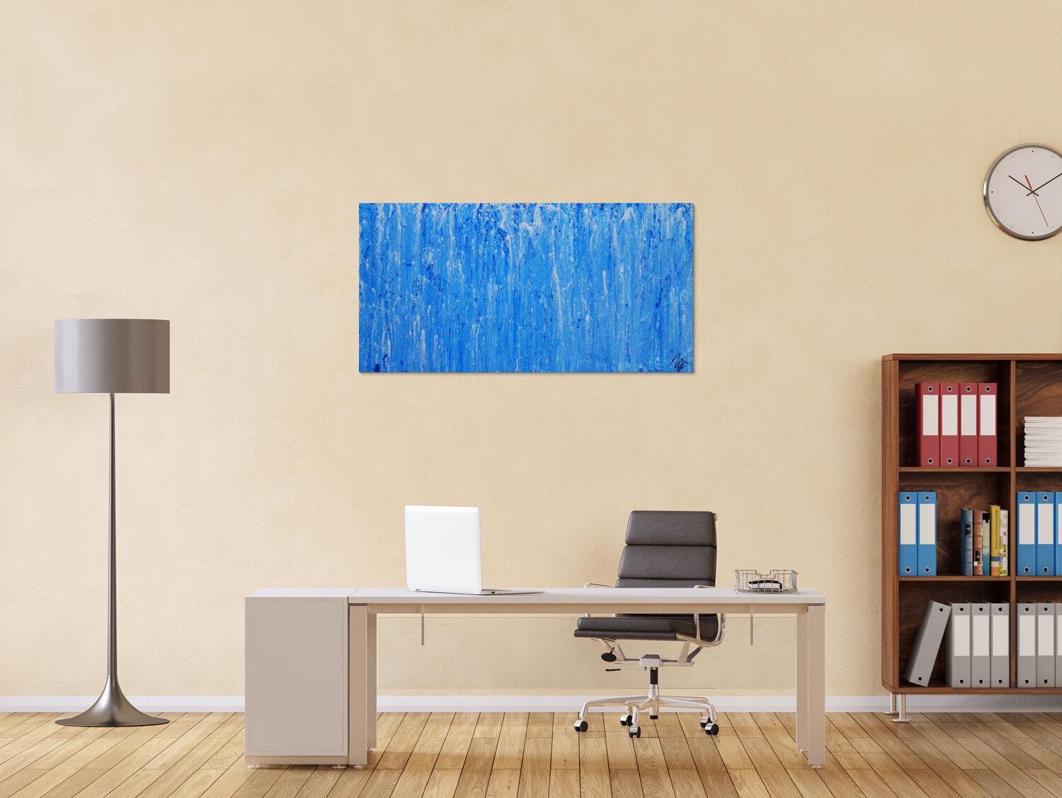 Abstraktes Gemälde auf Leinwand Abstraktes Acrylbild Mischtechnik hellblau weiß blau modern zeitgenössisch in 60x120cm von Alex Zerr