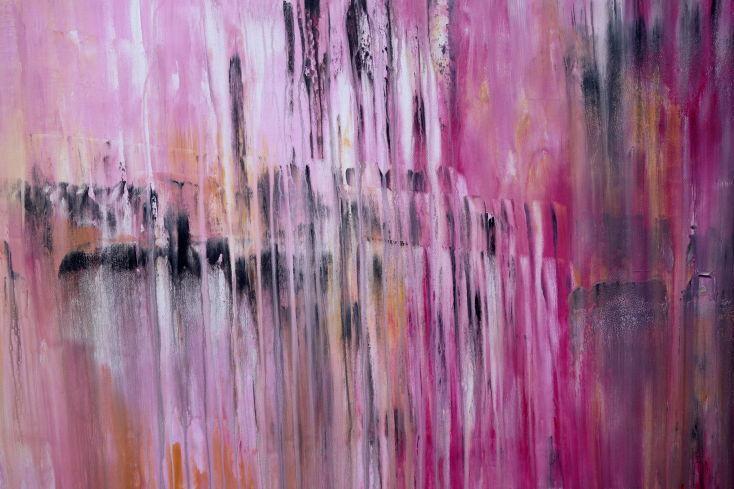 Abstraktes Gemälde auf Leinwand Abstraktes Acrylbild Mischtechnik modern zeitgenössisch in altrosa magenta anthrazit   in 120x150cm von Alex Zerr