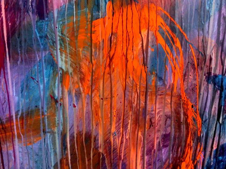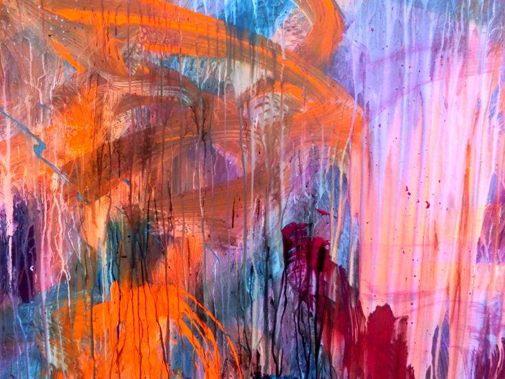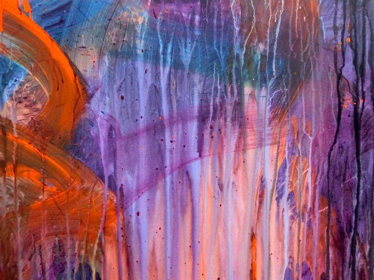 Abstraktes Acrylbild Mischtechnik sehr modern groß in lila violett orange