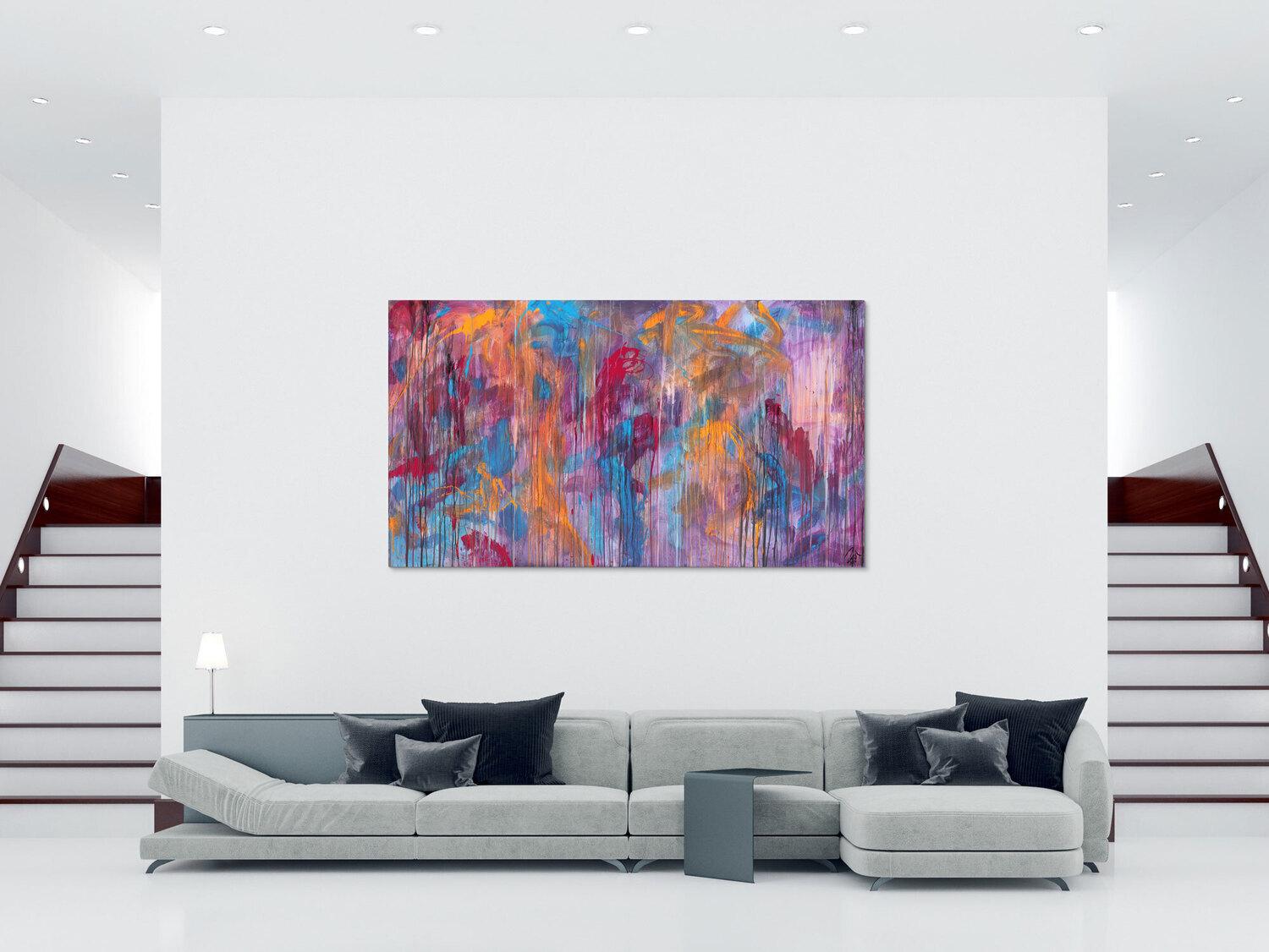 Die großformatigen, abstrakten Acrylgemälde sind ideal für Wohnzimmer, Schlafzimmer, Büros oder Geschäftsräume. Sie setzen farbenfrohe Akzente und schaffen eine lebendige, individuelle Atmosphäre die Sie und Ihre Gäste oder Kunden beeindrucken wird.