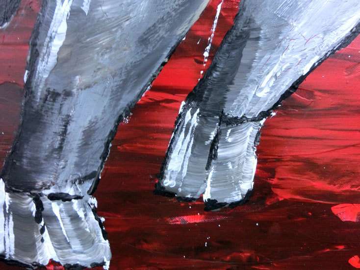 Jedes Gemälde ist auf einem massiven Keilrahmen aufgespannt, welcher speziell für große Gemälde ausgelegt ist und aus verzug sicherem keilgezinkten Holz besteht.