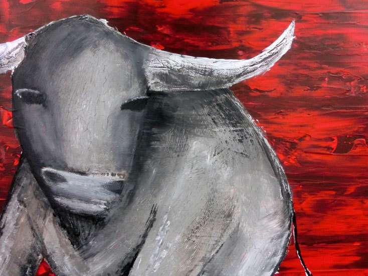 Abstraktes Acrylbild mit einem Stier