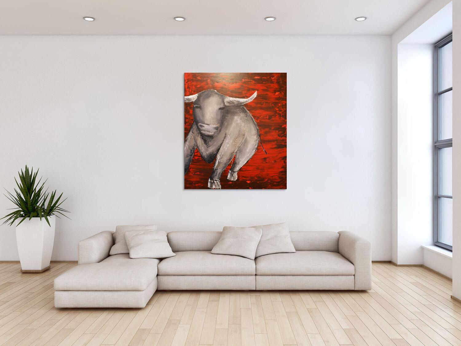 Abstraktes Gemälde auf Leinwand Abstraktes Acrylbild mit einem Stier in 80x100cm von Alex Zerr