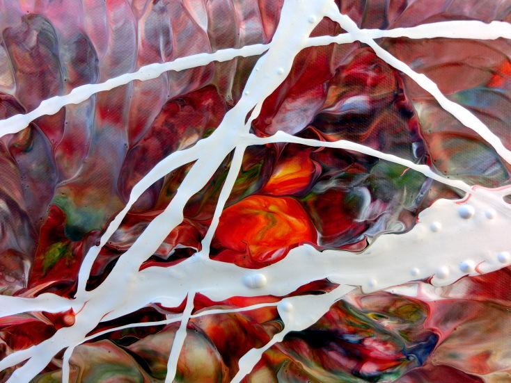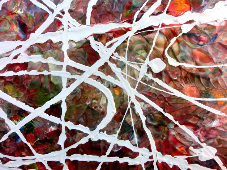 Dieses Werk ist wie alle meine Bilder: spontan entstanden, ganz intuitiv und ohne festes Konzept, und spiegelt oft meine momentane Stimmung wider wie auf der Leinwand festgehalten wurde.