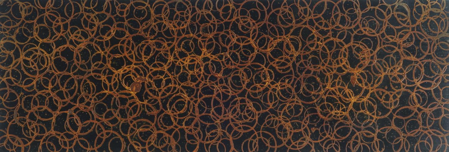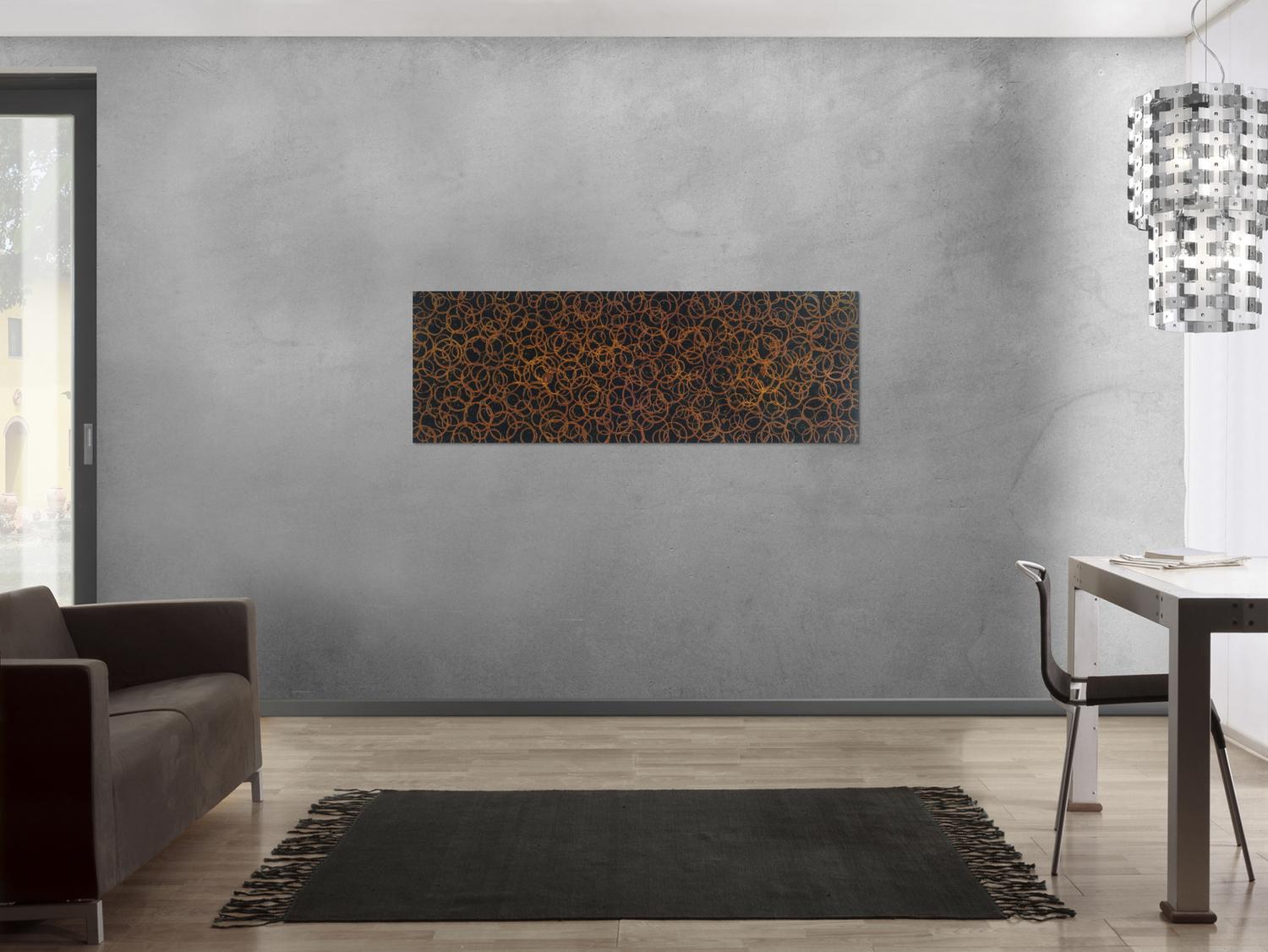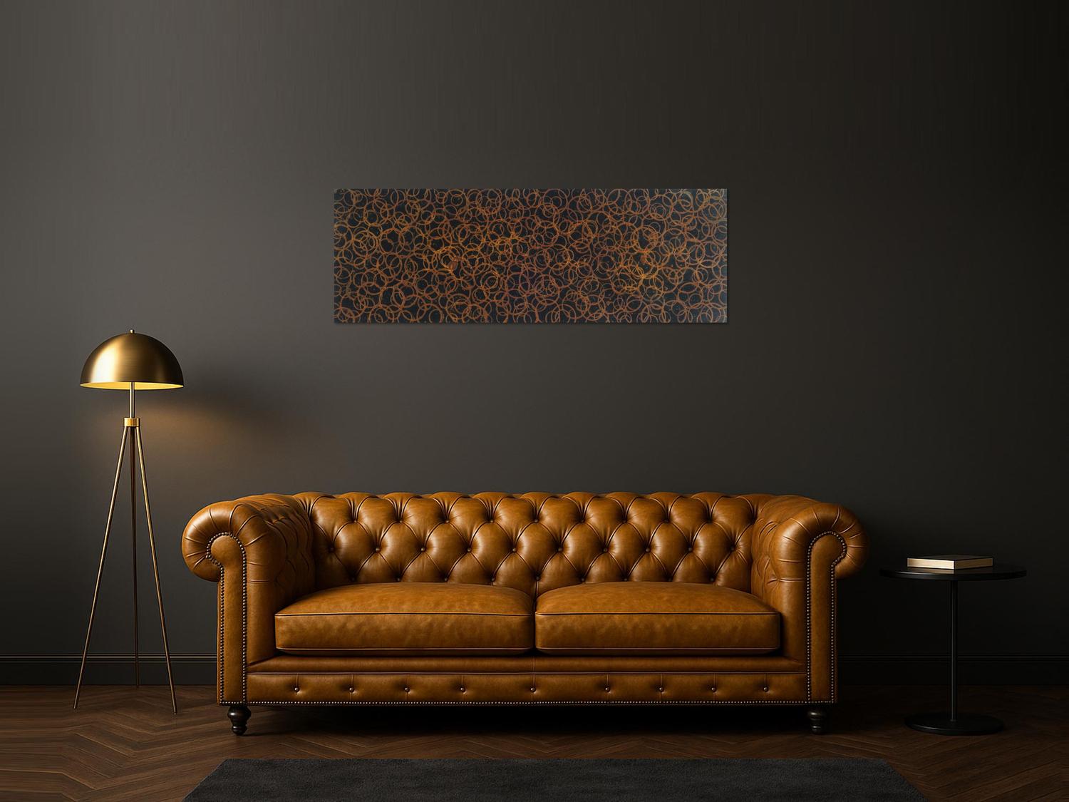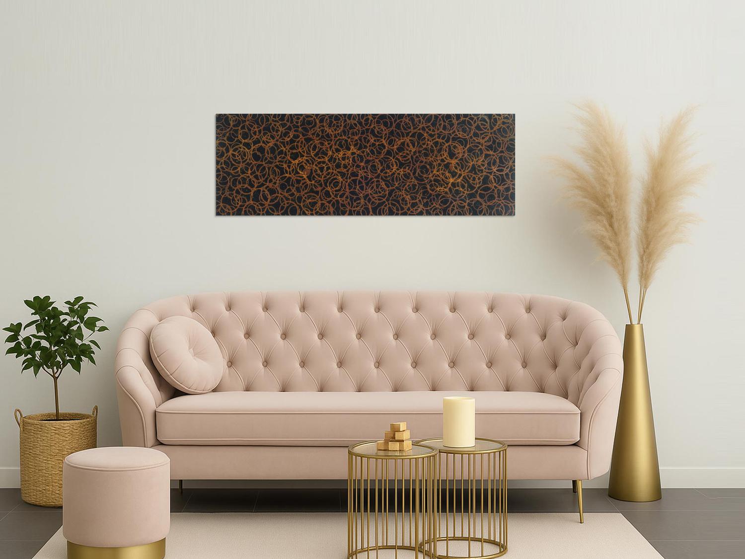 Abstraktes Gemälde auf Leinwand Abstraktes Acrylbild mit Ringen aus echtem Rost in 50x150cm von Alex Zerr