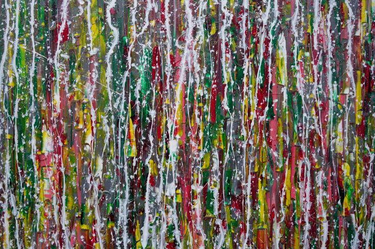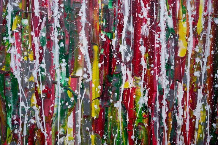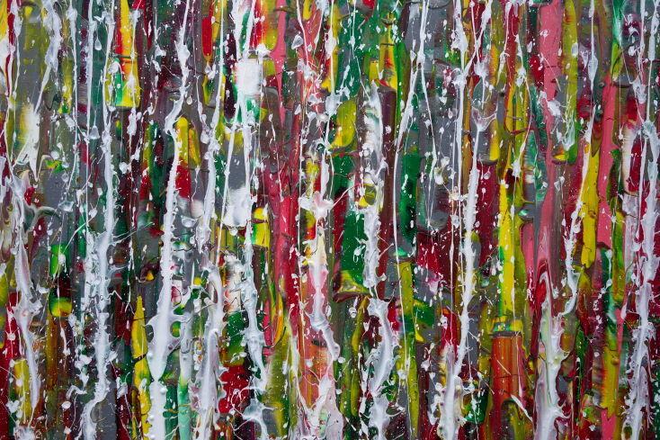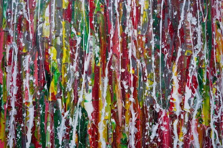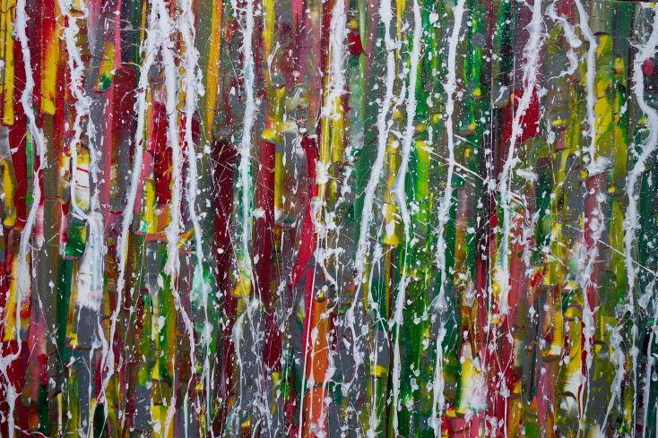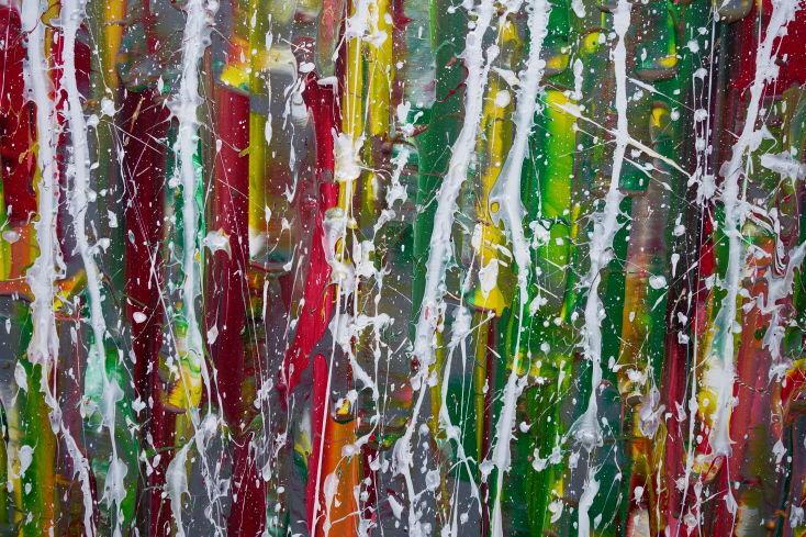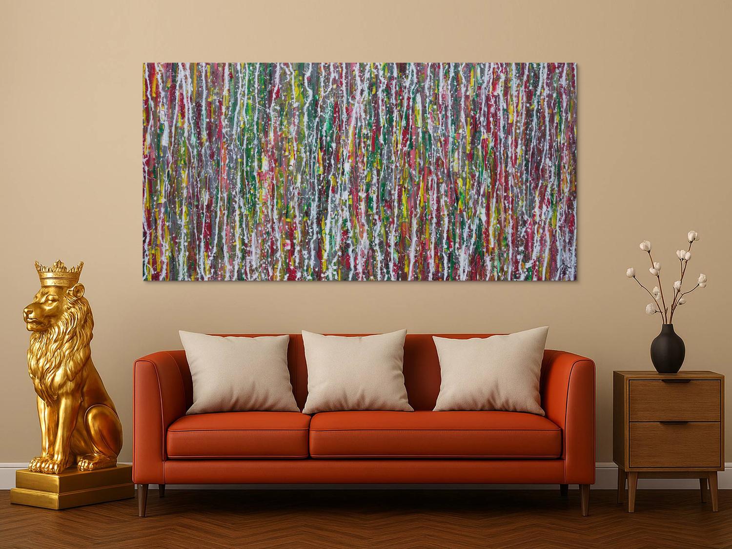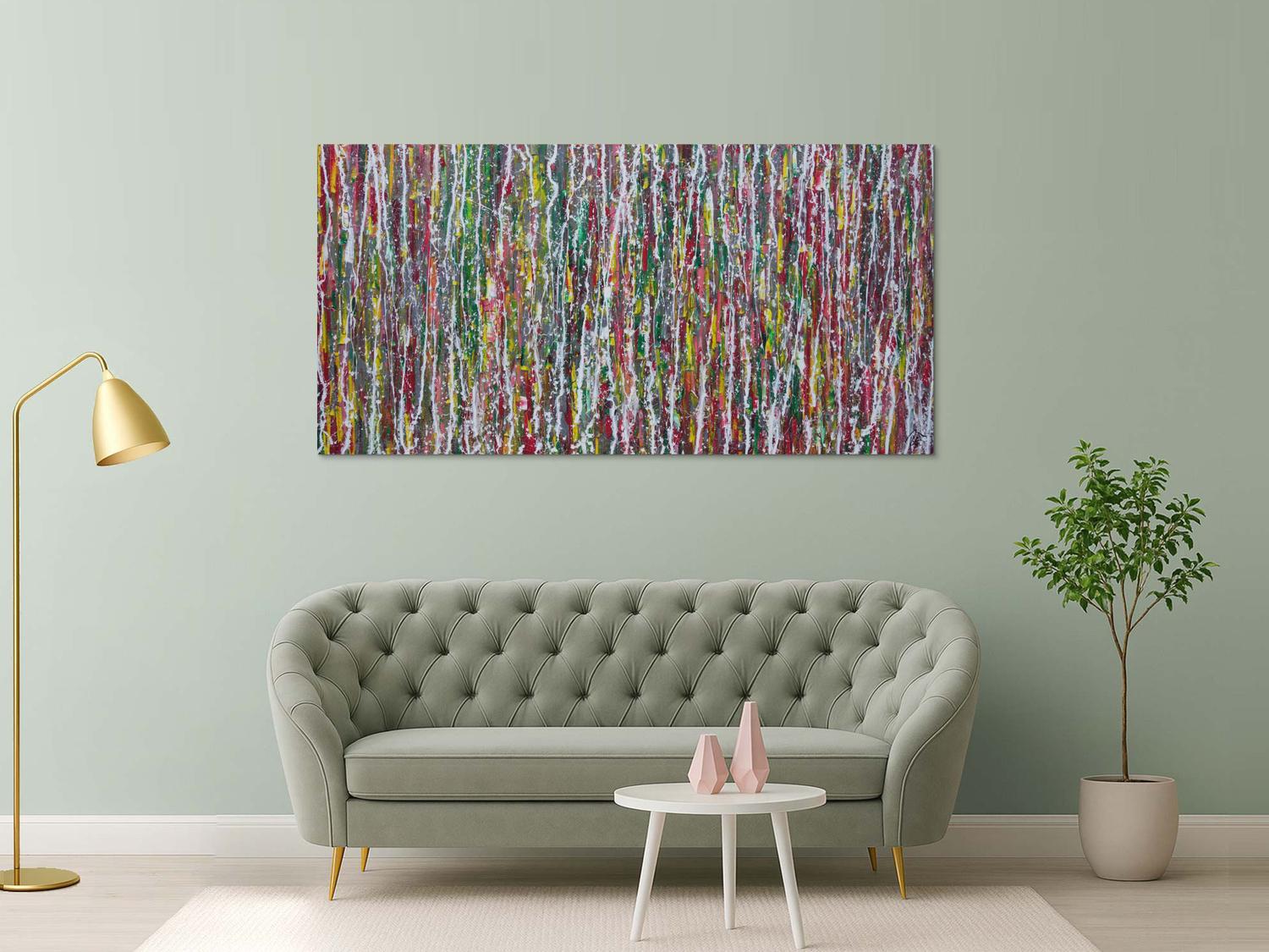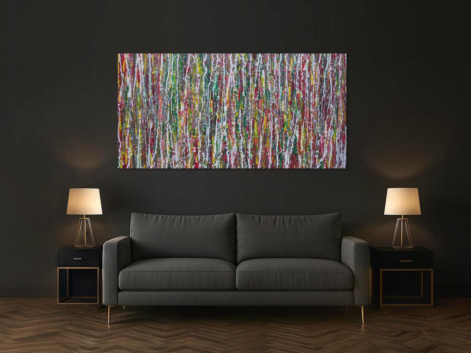 Abstraktes Gemälde auf Leinwand Abstraktes Acrylbild Modern Art Action painting bunt rot grün gelb grau weiß in 100x200cm von Alex Zerr