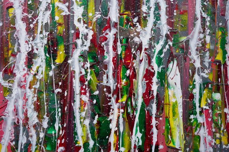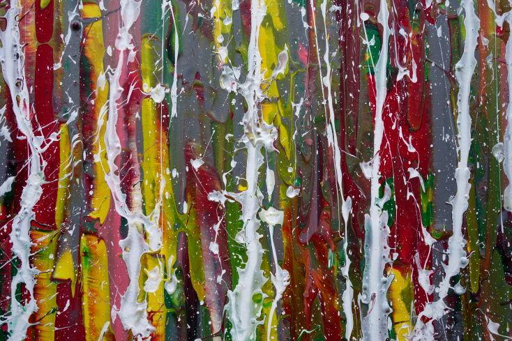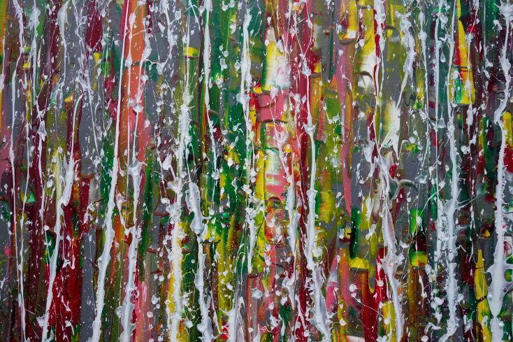 Abstraktes Acrylbild Modern Art Action painting bunt rot grün gelb grau weiß