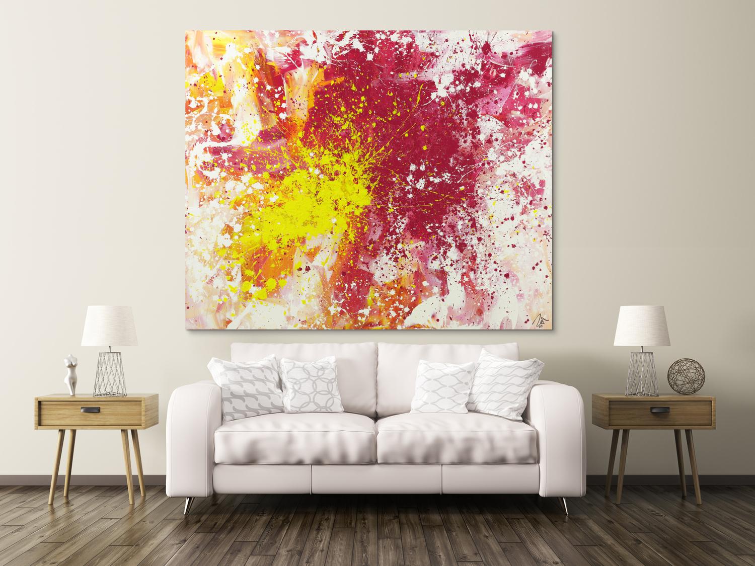 Die großformatigen, abstrakten Acrylgemälde sind ideal für Wohnzimmer, Schlafzimmer, Büros oder Geschäftsräume. Sie setzen farbenfrohe Akzente und schaffen eine lebendige, individuelle Atmosphäre die Sie und Ihre Gäste oder Kunden beeindrucken wird.
