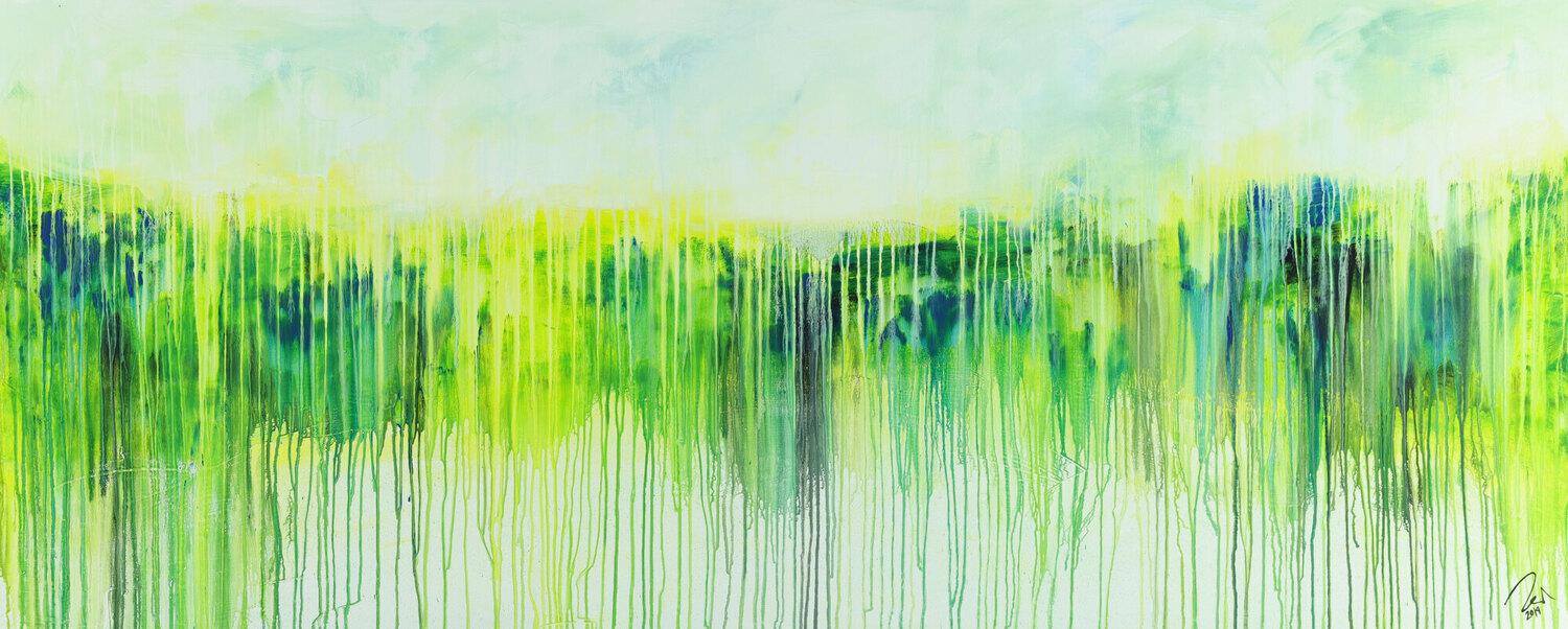 Dieses abstrakte Acrylbild ist ein handgemaltes Original vom Künstler Alex Zerr aus Bad Lisppringe und ist im Jahr 2019 in seinem Atelier entstanden. Das Bild hat eine Größe von 80x200cm und ist bereits auf einem hochwertigen und stabilem Rahmen aufgespannt. Dadurch kann das Bild nach der Lieferung direkt an die Wand gehängt werden und sofort in Ihrem Raum wirken. Alle Seiten des Gemäldes sind passend zum Motiv bemalt, so dass kein zusätzlicher Rahmen benötigt wird.