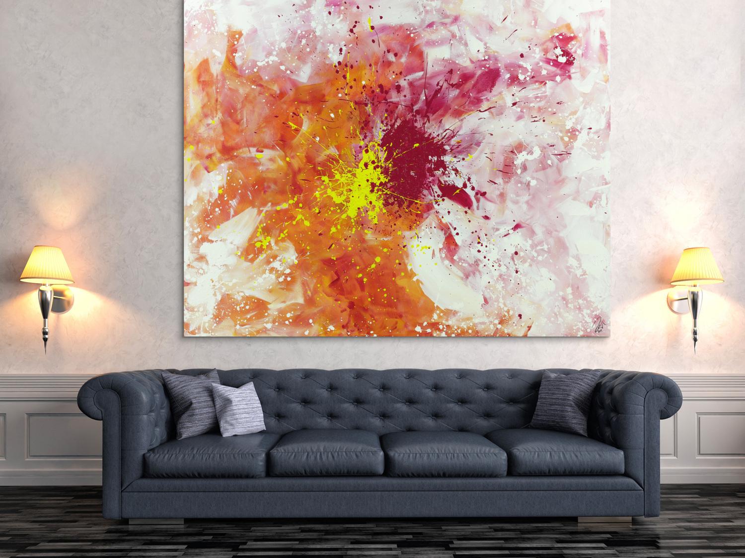 Abstraktes Acrylbild Modern Art groß expressionistisch Action Painting weiß pink rosa gelb orange