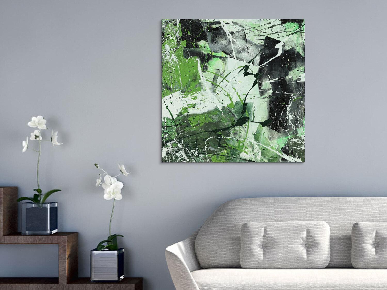Abstraktes Acrylbild Modern Art handgemalt auf Leinwand Action Painting quadratisch