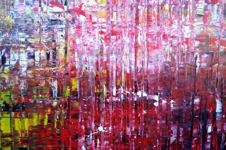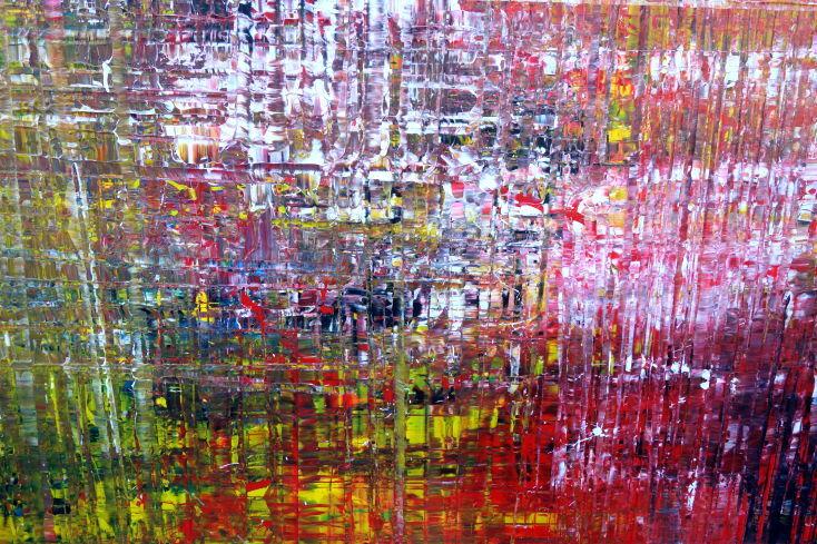 Dieses abstrakte Acrylbild ist ein handgemaltes Original vom Künstler Alex Zerr aus Bad Lisppringe und ist im Jahr 2018 in seinem Atelier entstanden. Das Bild hat eine Größe von 140x160cm und ist bereits auf einem hochwertigen und stabilem Rahmen aufgespannt. Dadurch kann das Bild nach der Lieferung direkt an die Wand gehängt werden und sofort in Ihrem Raum wirken. Alle Seiten des Gemäldes sind passend zum Motiv bemalt, so dass kein zusätzlicher Rahmen benötigt wird.