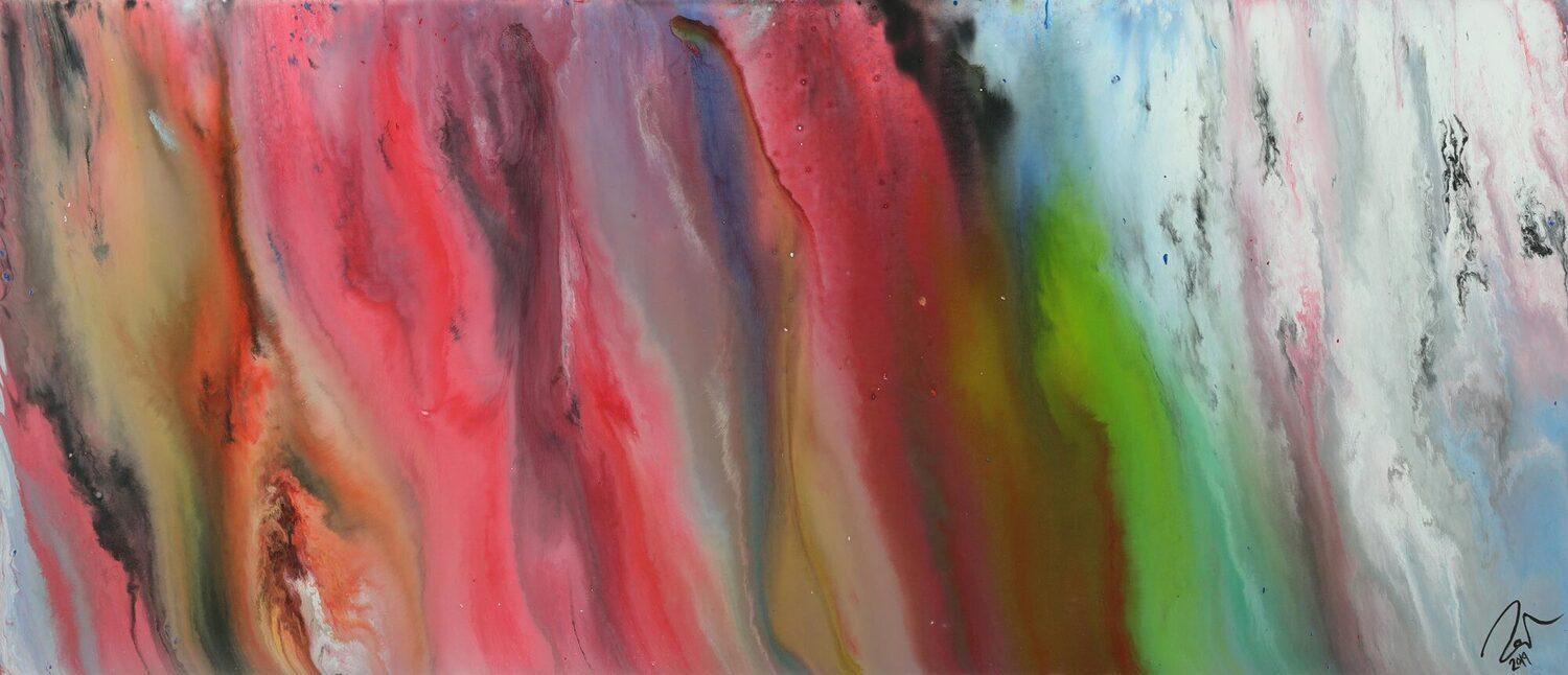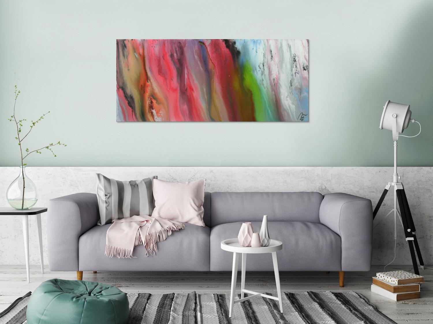 Abstraktes Gemälde auf Leinwand Abstraktes Acrylbild Modern Art zeitgenössisch abstrakt Fließtechnik Fluidpainting Pastellfarben in 60x140cm von Alex Zerr