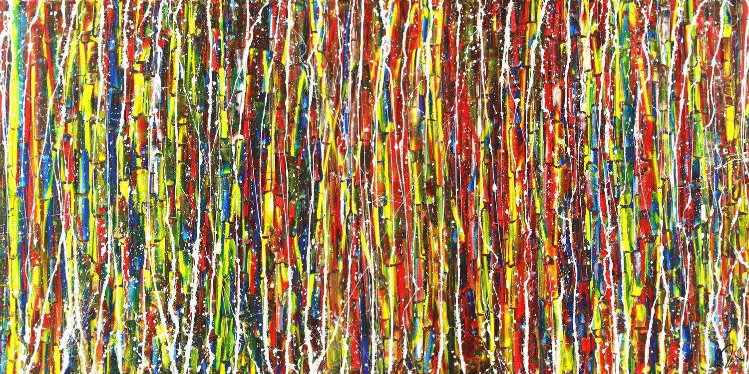 Dieses abstrakte Acrylbild ist ein handgemaltes Original vom Künstler Alex Zerr aus Bad Lisppringe und ist im Jahr 2019 in seinem Atelier entstanden. Das Bild hat eine Größe von 100x200cm und ist bereits auf einem hochwertigen und stabilem Rahmen aufgespannt. Dadurch kann das Bild nach der Lieferung direkt an die Wand gehängt werden und sofort in Ihrem Raum wirken. Alle Seiten des Gemäldes sind passend zum Motiv bemalt, so dass kein zusätzlicher Rahmen benötigt wird.