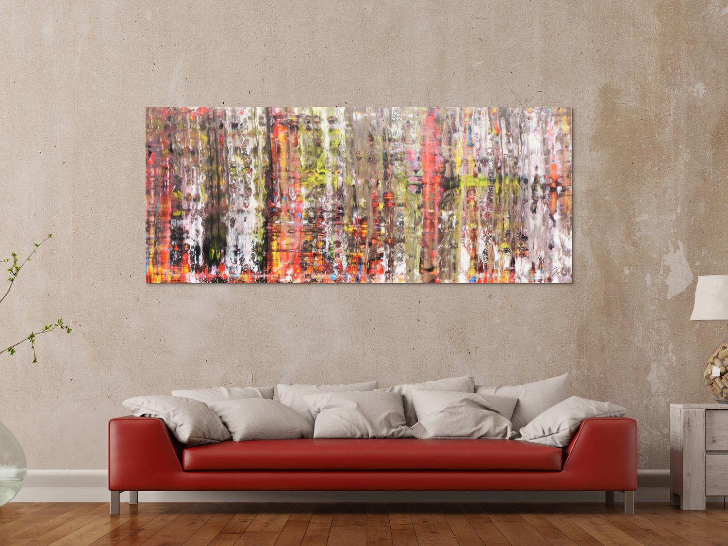 Abstraktes Gemälde auf Leinwand Abstraktes Acrylbild modern bunt weiß hell  in 80x200cm von Alex Zerr