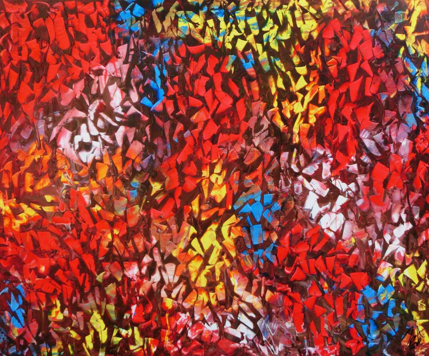 Dieses abstrakte Acrylbild ist ein handgemaltes Original vom Künstler Alex Zerr aus Bad Lisppringe und ist im Jahr 2016 in seinem Atelier entstanden. Das Bild hat eine Größe von 120x140cm und ist bereits auf einem hochwertigen und stabilem Rahmen aufgespannt. Dadurch kann das Bild nach der Lieferung direkt an die Wand gehängt werden und sofort in Ihrem Raum wirken. Alle Seiten des Gemäldes sind passend zum Motiv bemalt, so dass kein zusätzlicher Rahmen benötigt wird.