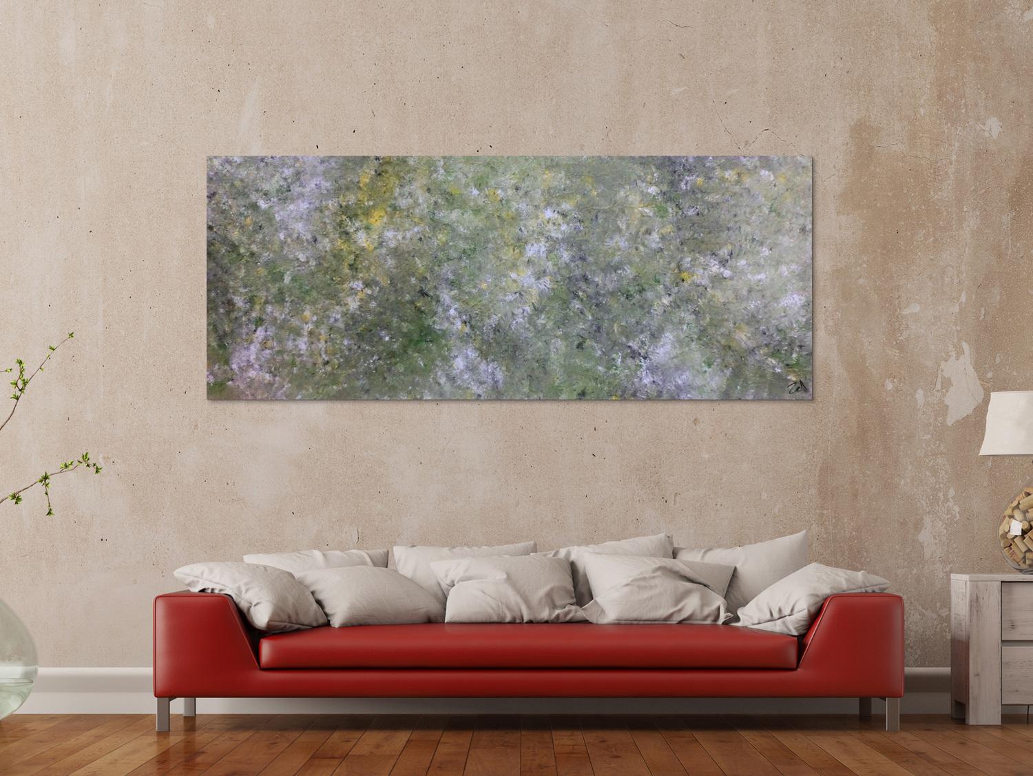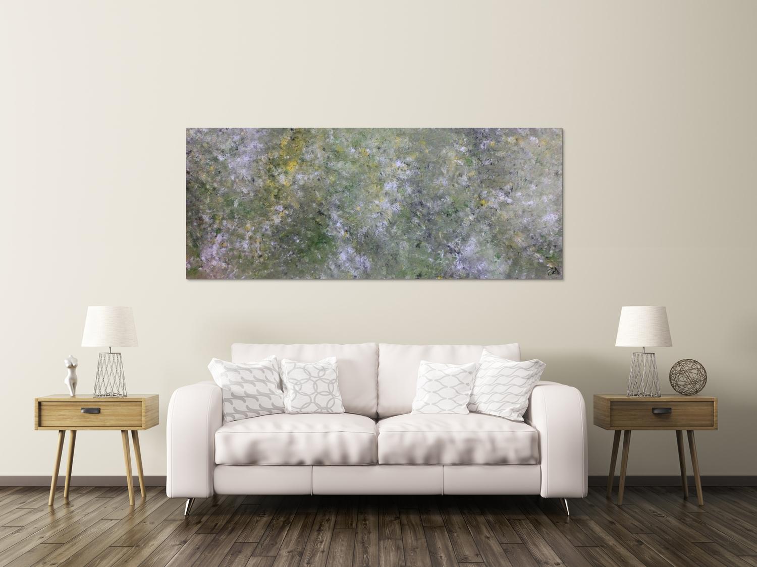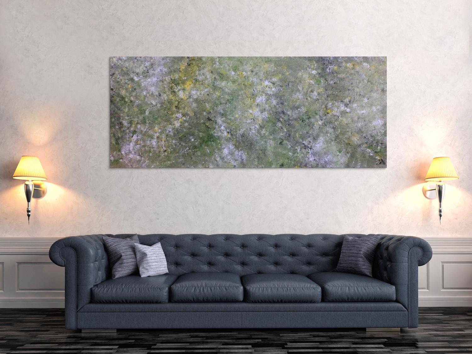 Abstraktes Gemälde auf Leinwand Abstraktes Acrylbild modern grün grau in 80x200cm von Alex Zerr