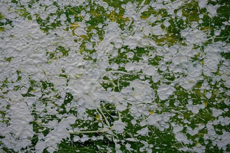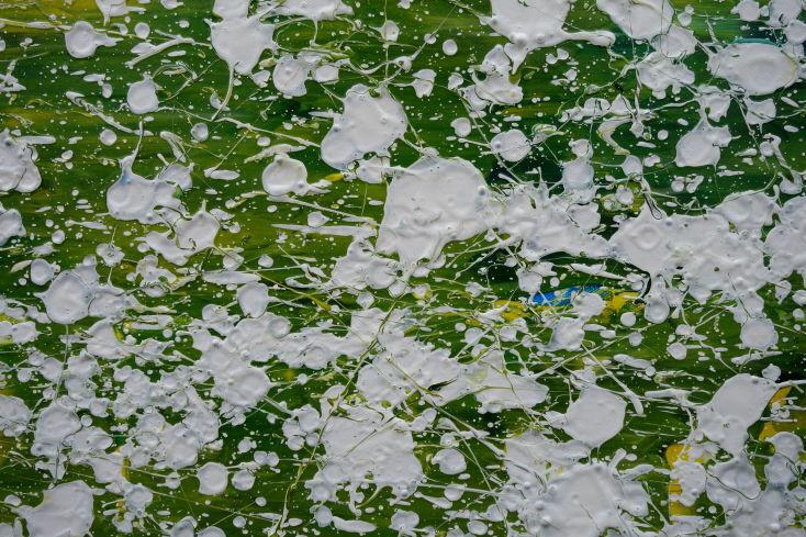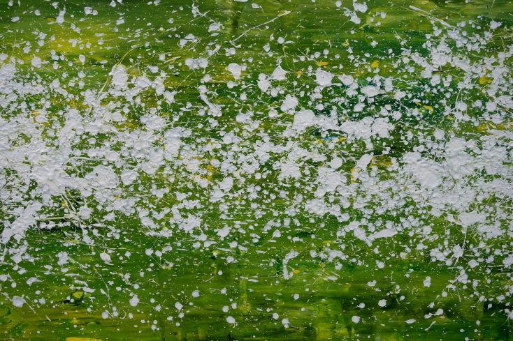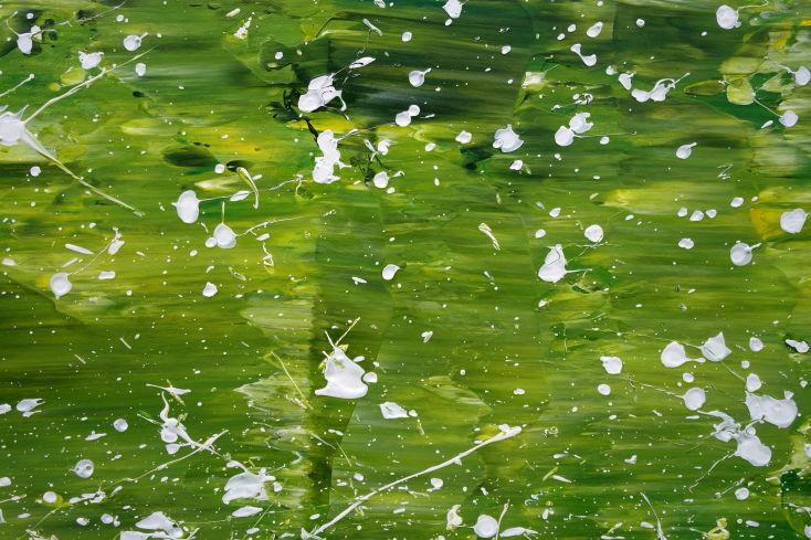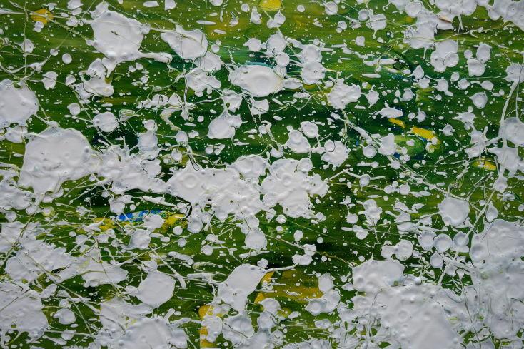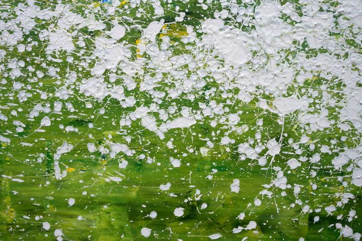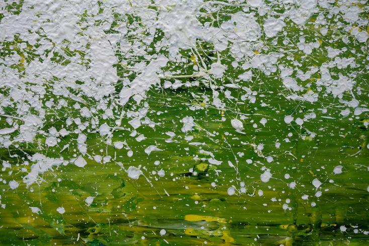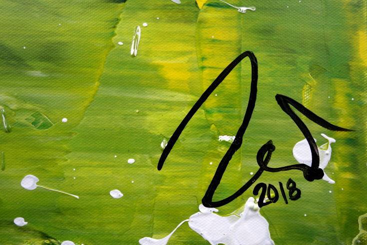 Abstraktes Acrylbild modern grün weiß Action Paintng Modern Art zeitgenössisch