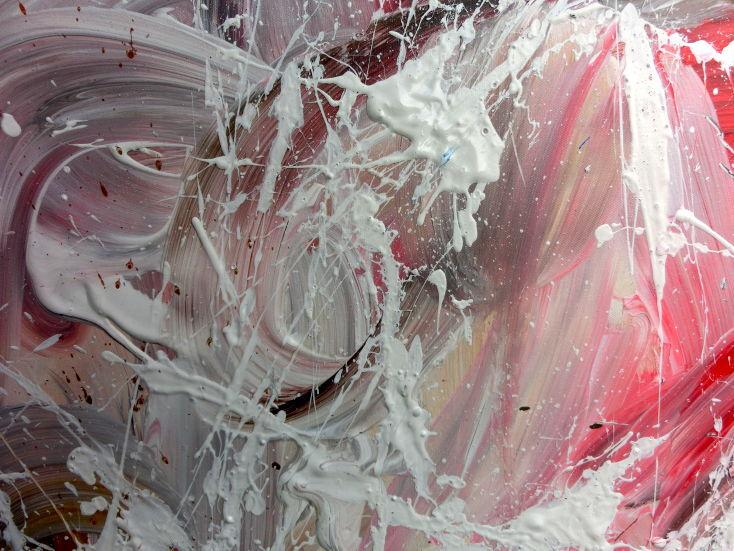 Dieses Werk ist wie alle meine Bilder: spontan entstanden, ganz intuitiv und ohne festes Konzept, und spiegelt oft meine momentane Stimmung wider wie auf der Leinwand festgehalten wurde.