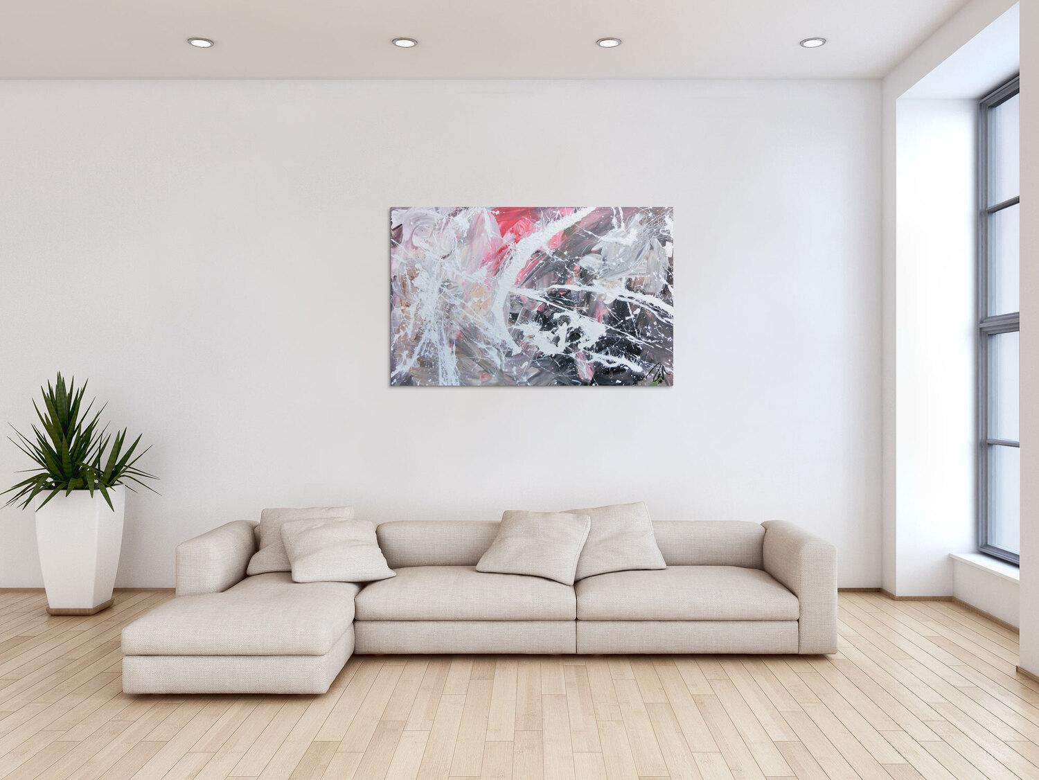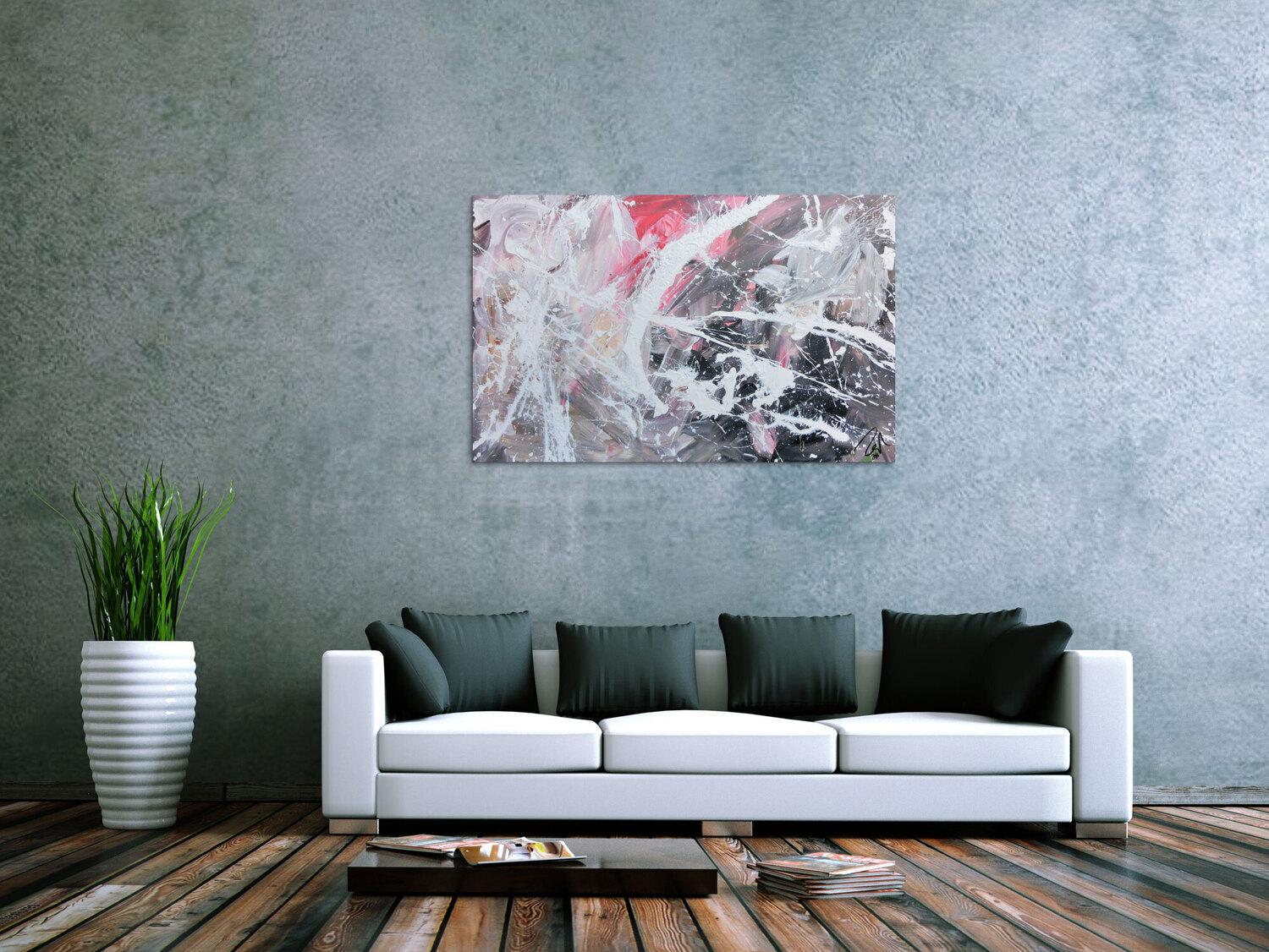 Abstraktes Gemälde auf Leinwand Abstraktes Acrylbild modern in grau schwarz weiß rot in 75x120cm von Alex Zerr