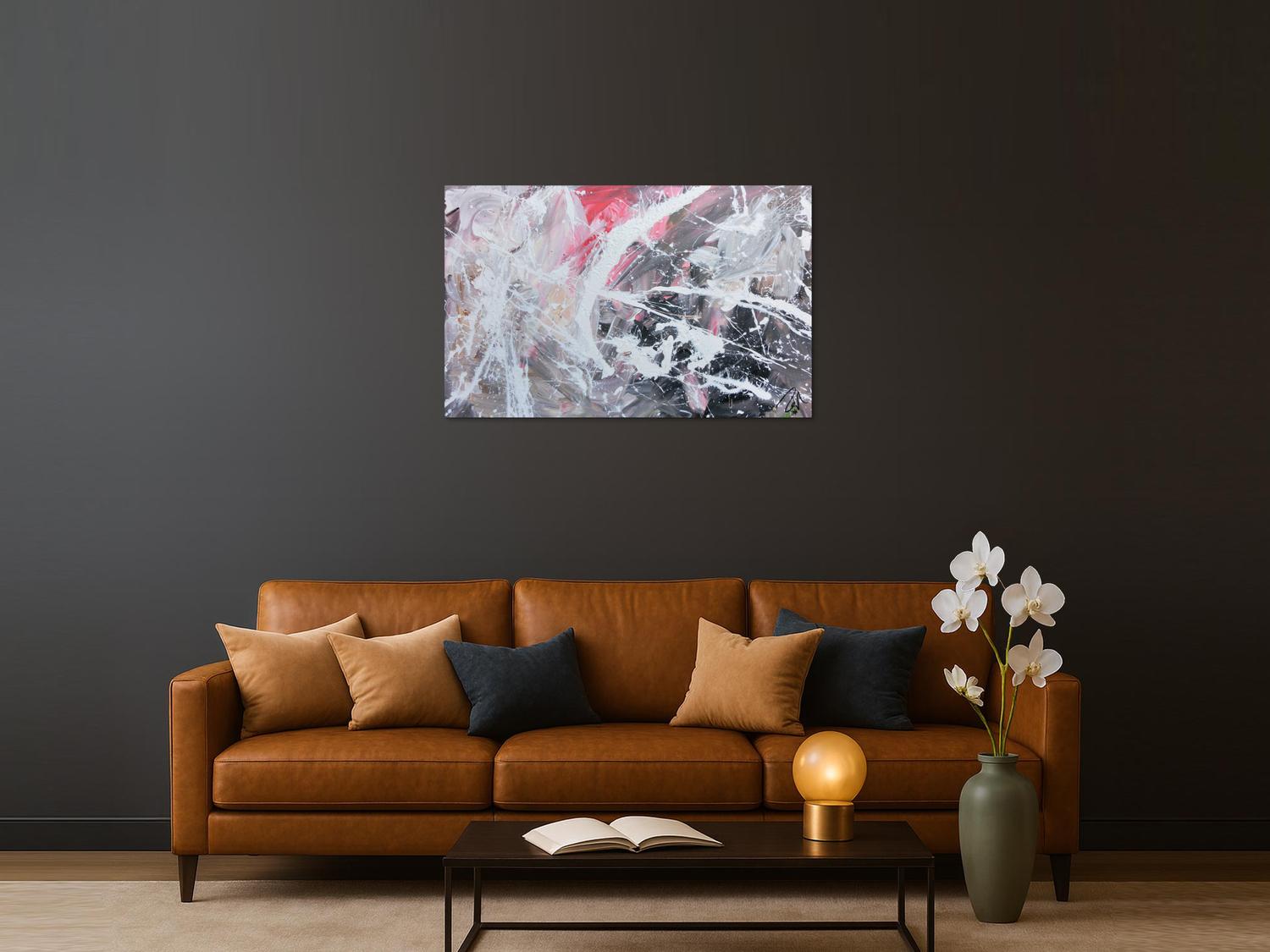 Abstraktes Acrylbild modern in grau schwarz weiß rot