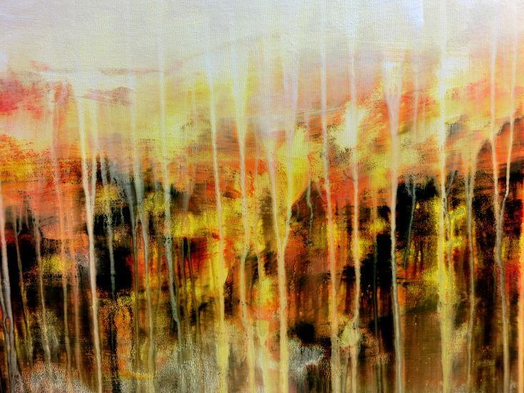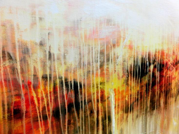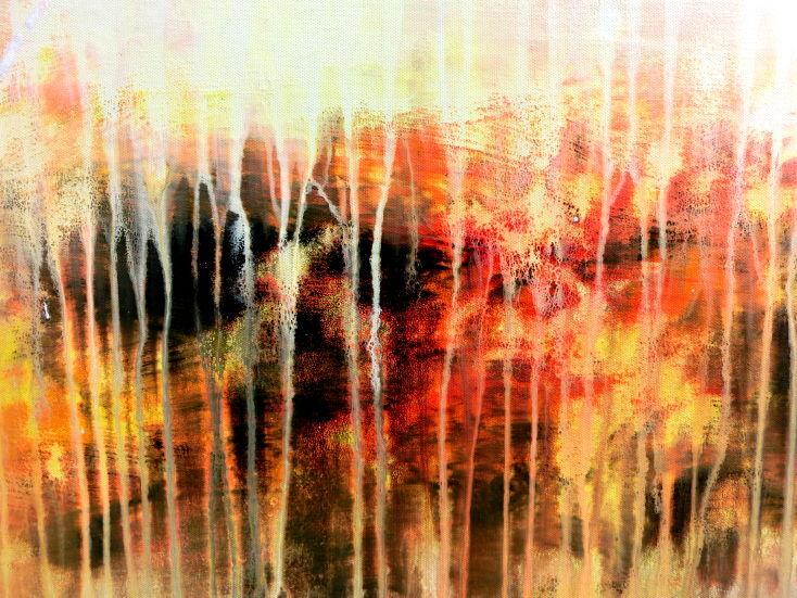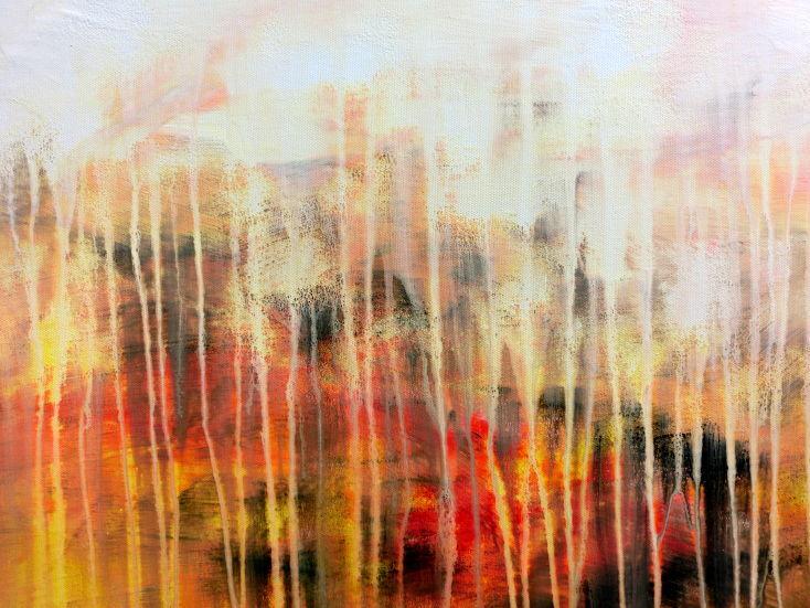 Dieses Werk ist wie alle meine Bilder: spontan entstanden, ganz intuitiv und ohne festes Konzept, und spiegelt oft meine momentane Stimmung wider wie auf der Leinwand festgehalten wurde.