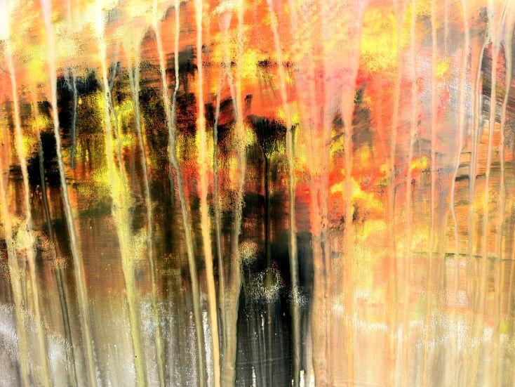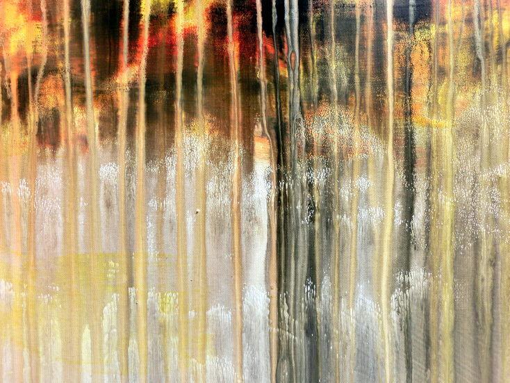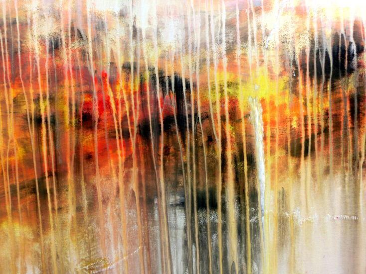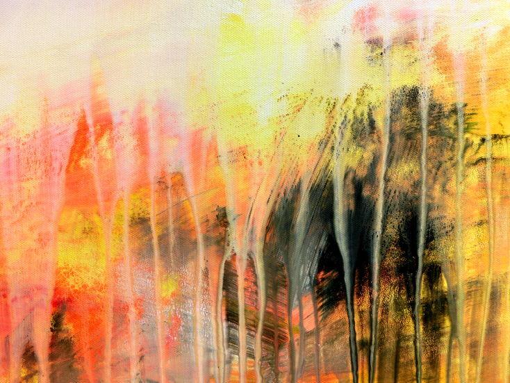 Abstraktes Acrylbild modern in hellen Farben Fließtechnik weiß gelb rot grau