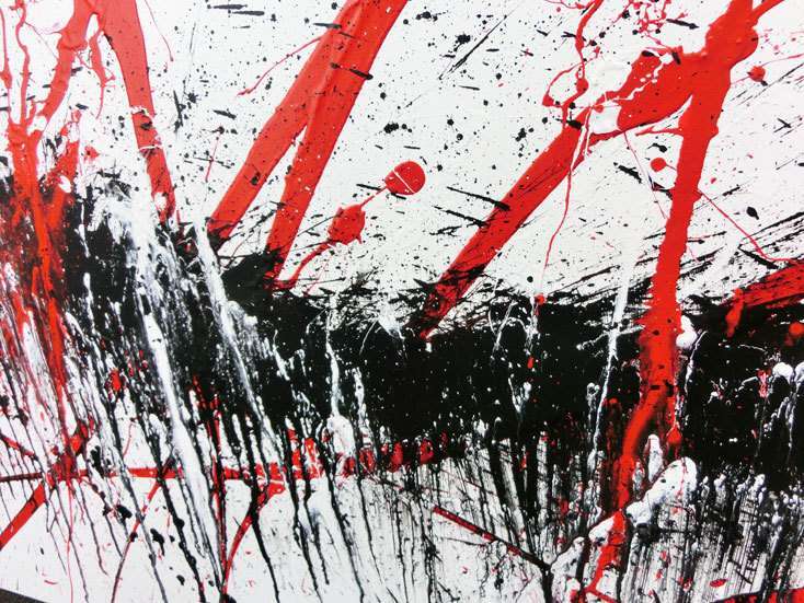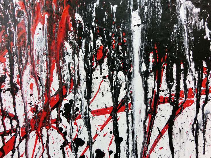 Abstraktes Acrylbild modern in schwarz weiß rot