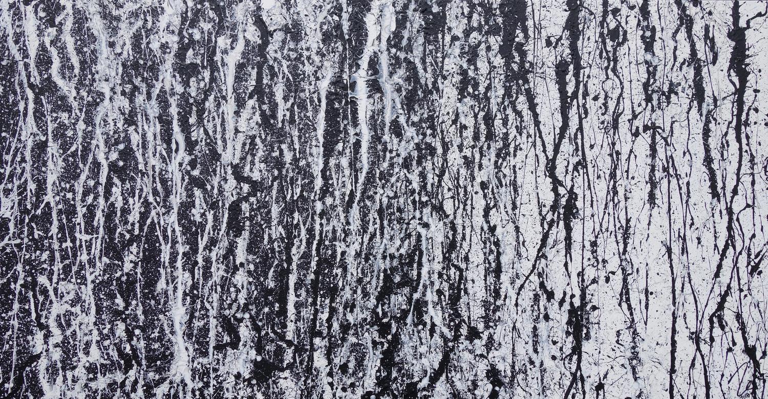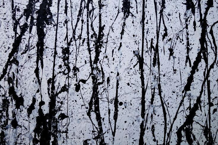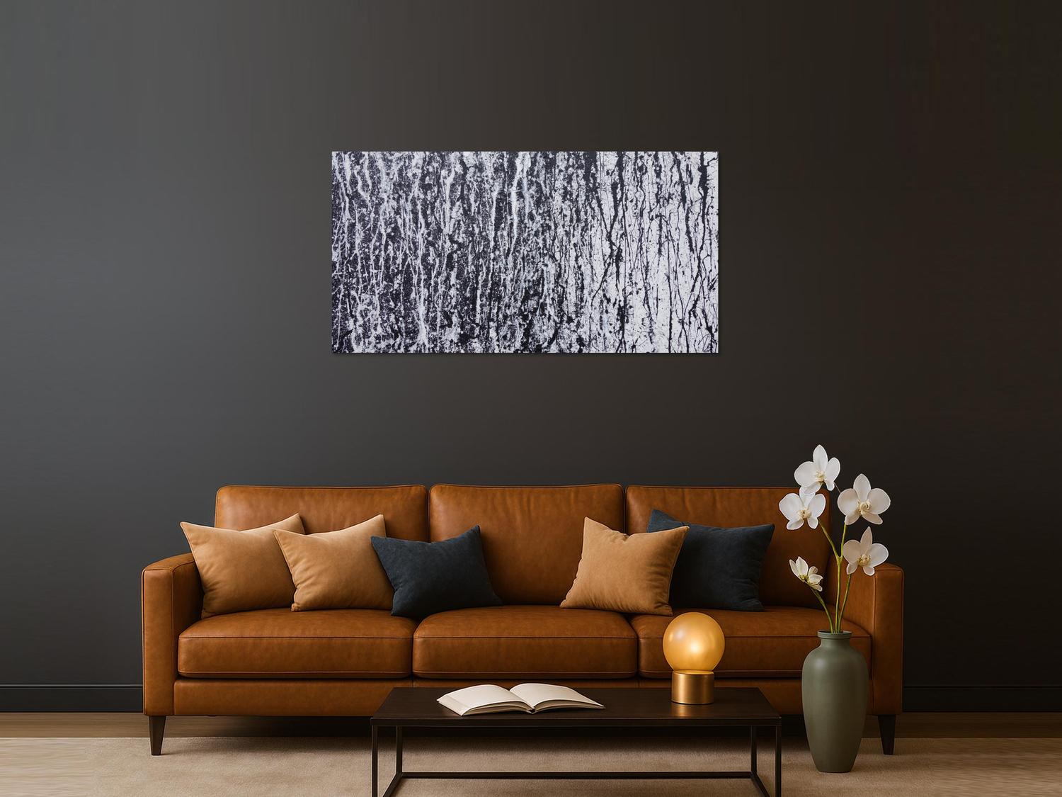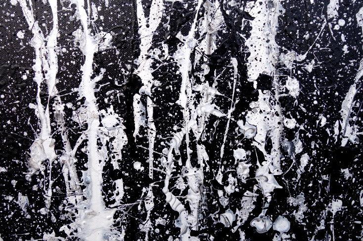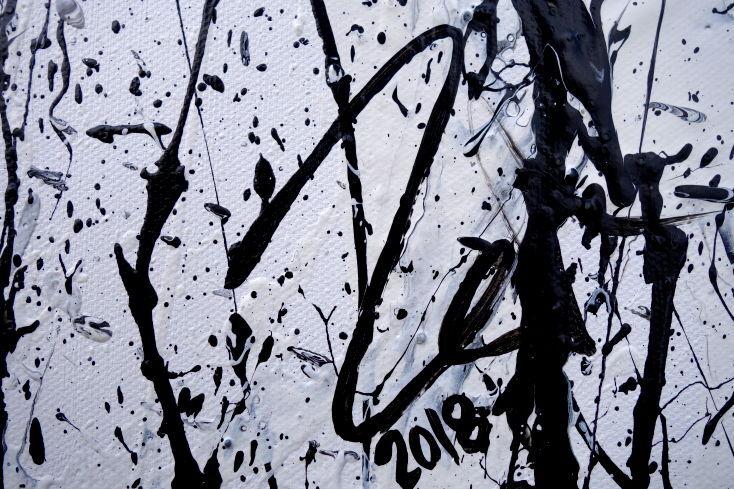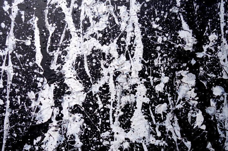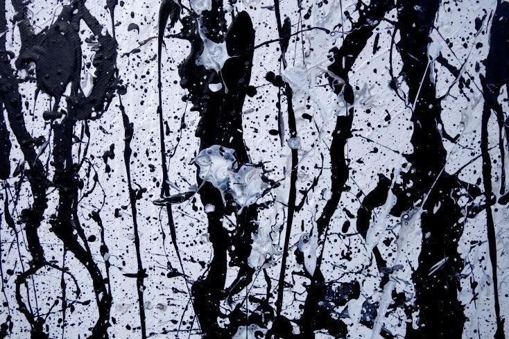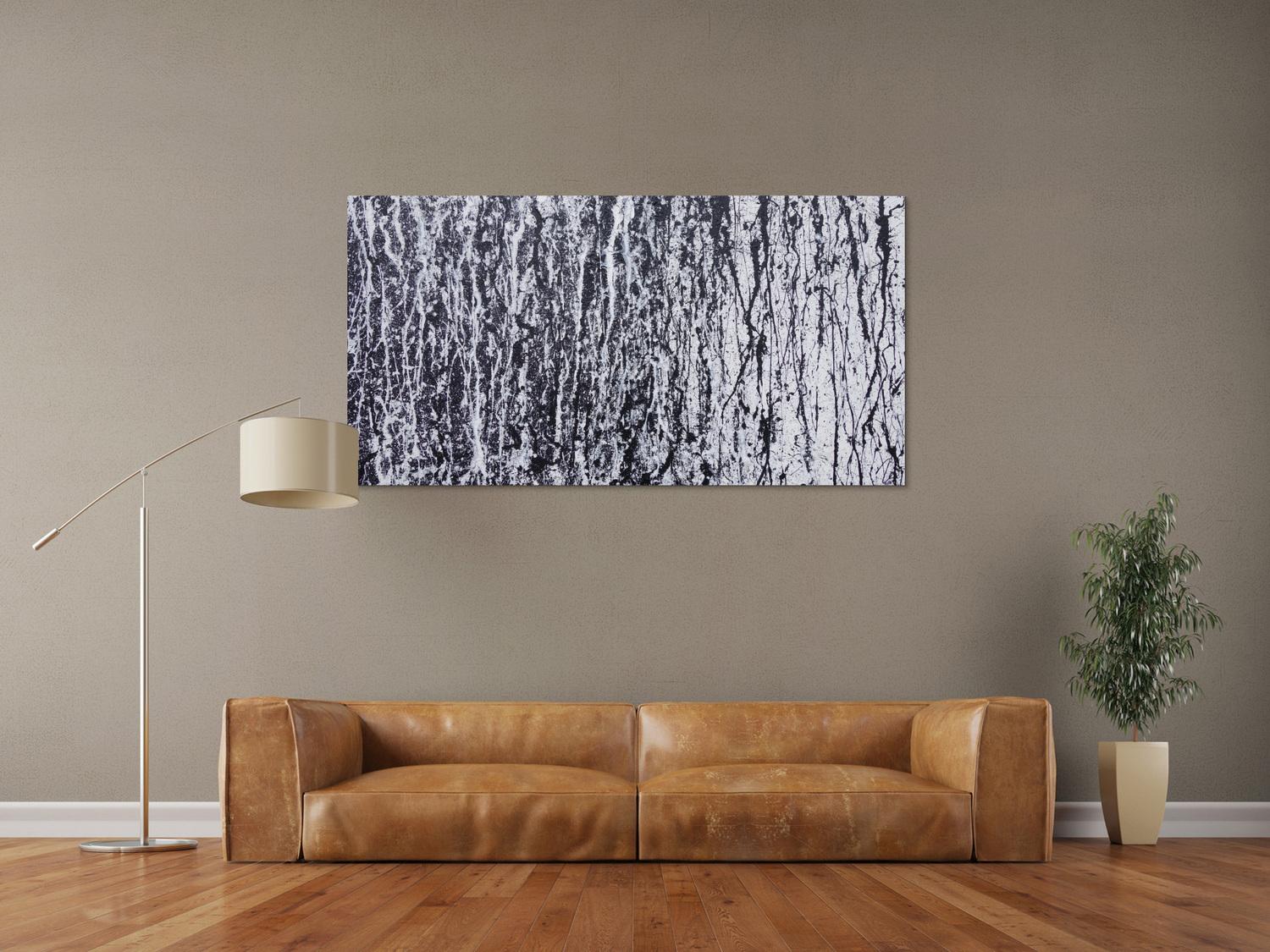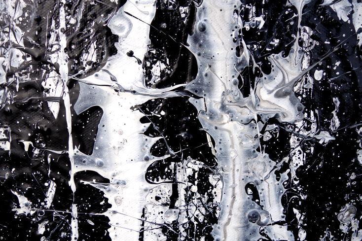 Abstraktes Acrylbild modern in schwarz weiß schlicht zeitgenössisch Action Painting