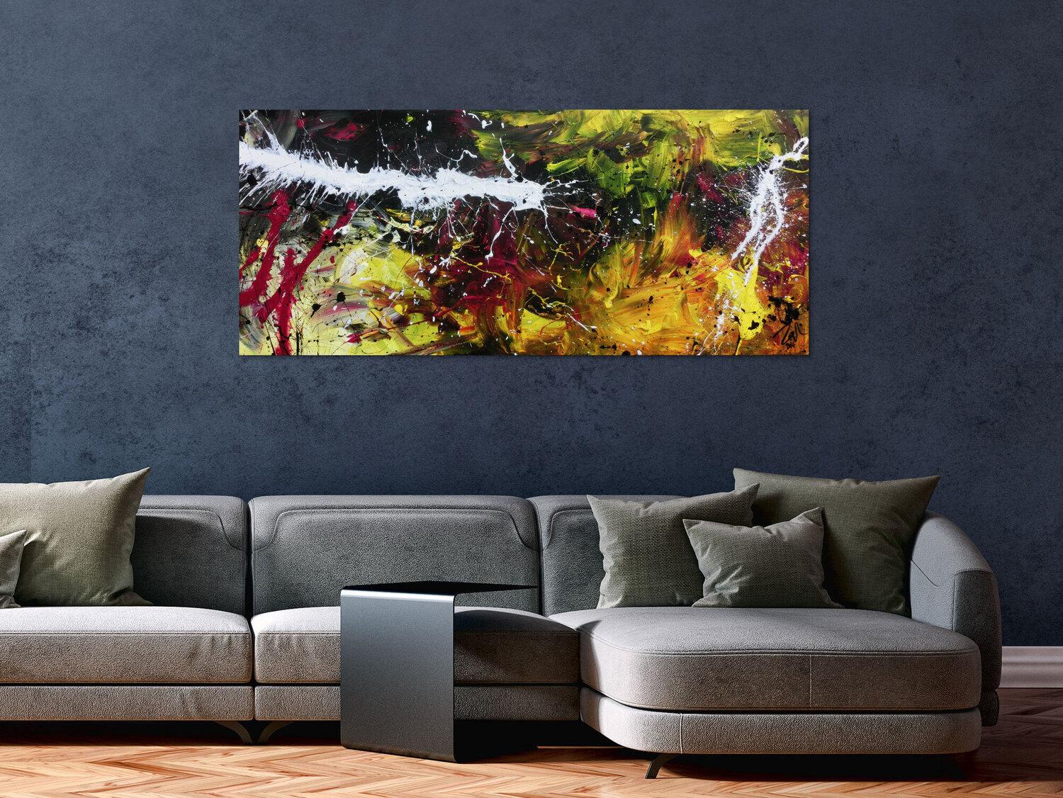 Die großformatigen, abstrakten Acrylgemälde sind ideal für Wohnzimmer, Schlafzimmer, Büros oder Geschäftsräume. Sie setzen farbenfrohe Akzente und schaffen eine lebendige, individuelle Atmosphäre die Sie und Ihre Gäste oder Kunden beeindrucken wird.