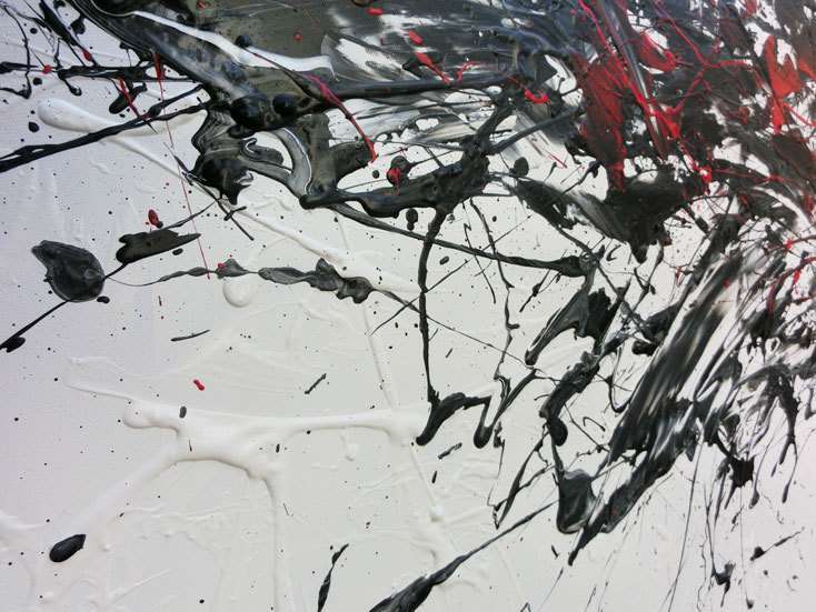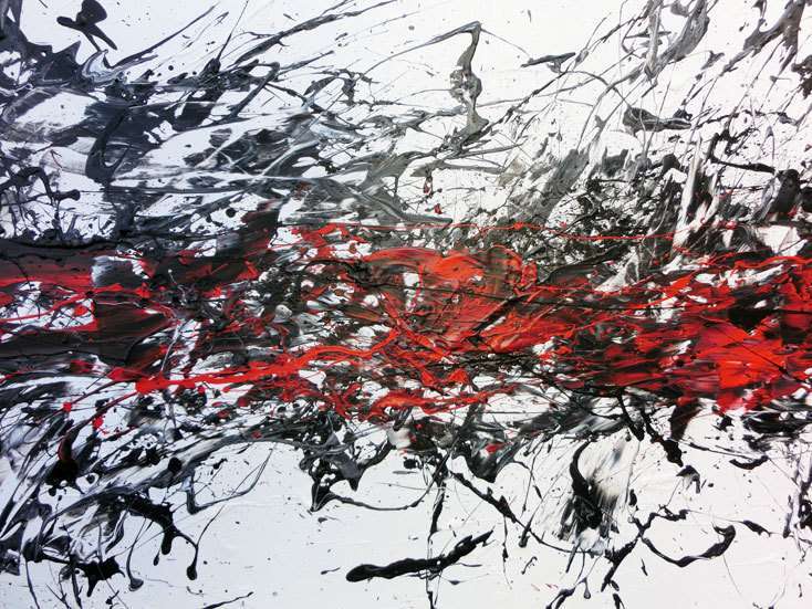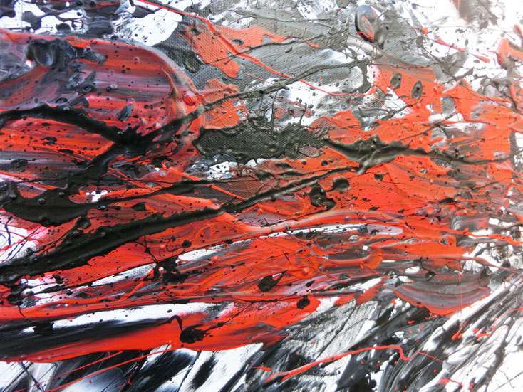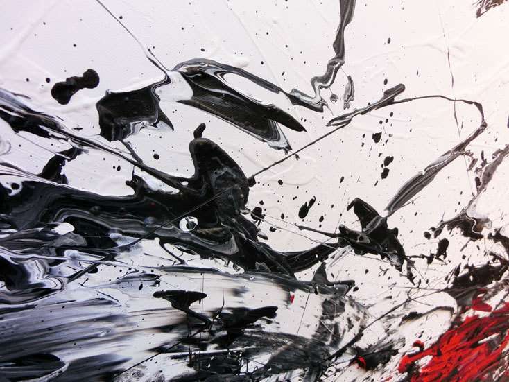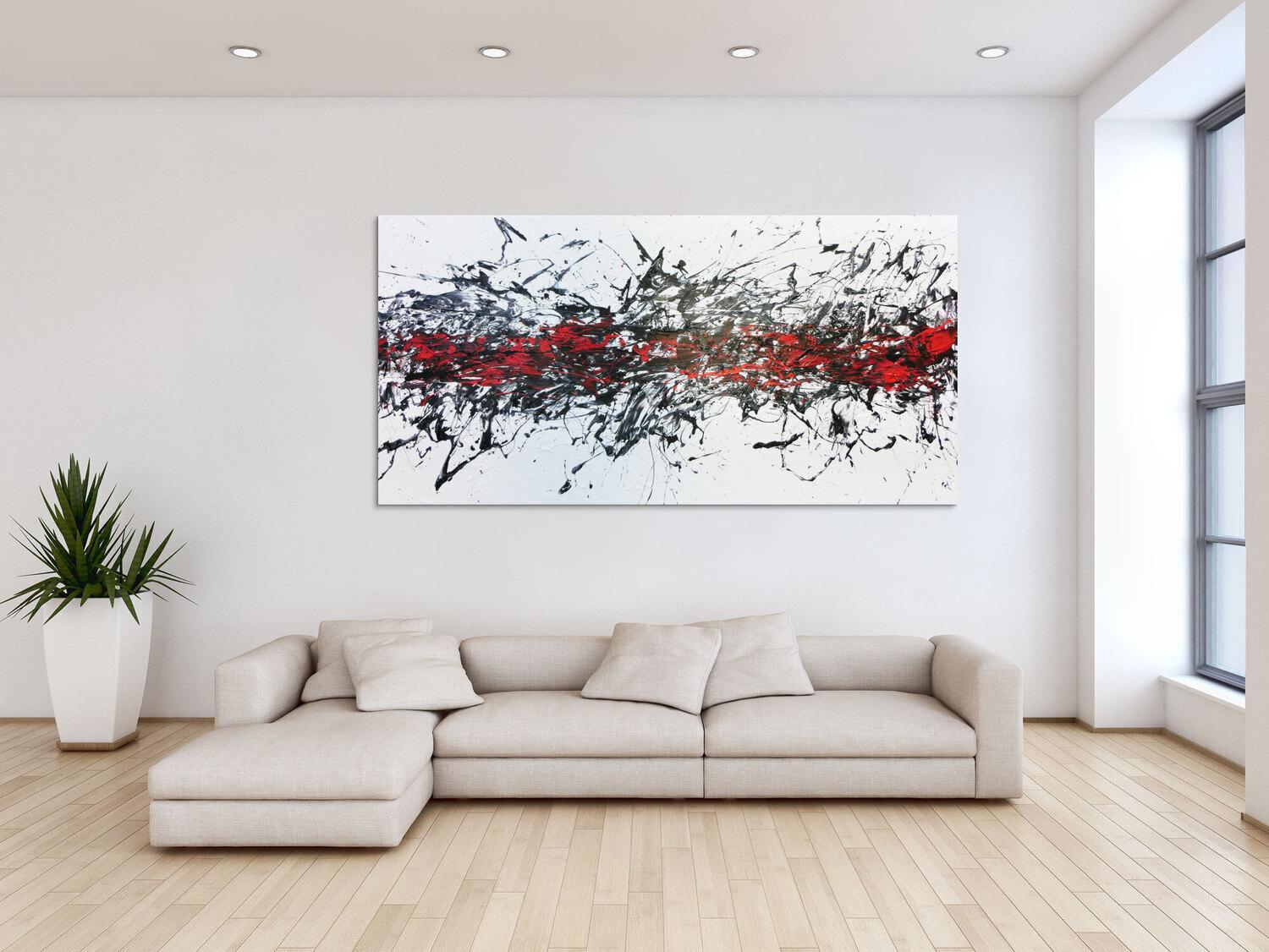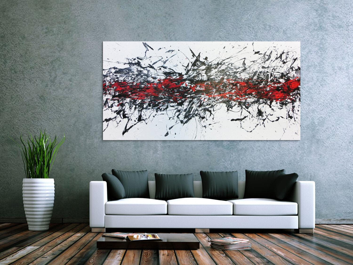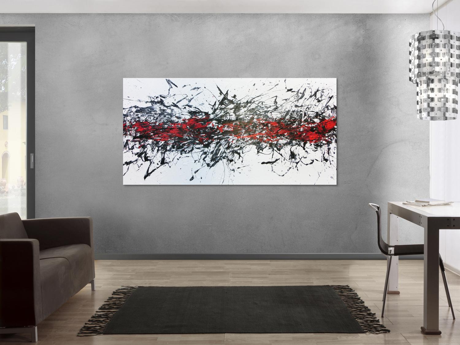 Abstraktes Acrylbild modern in weisß schwarz und rot