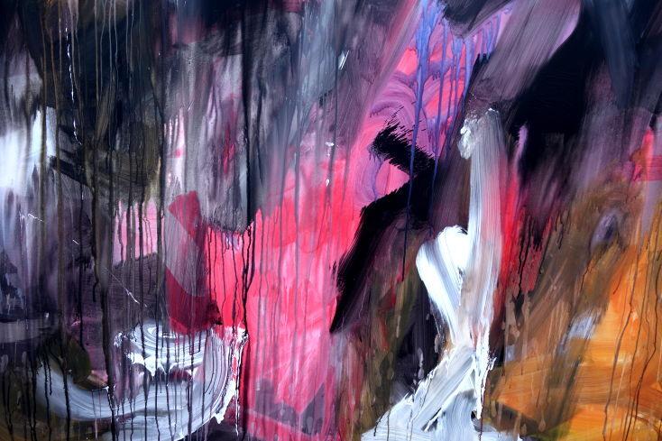 Dieses Werk ist wie alle meine Bilder: spontan entstanden, ganz intuitiv und ohne festes Konzept, und spiegelt oft meine momentane Stimmung wider wie auf der Leinwand festgehalten wurde.