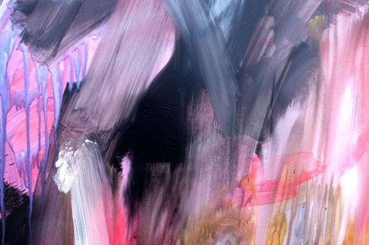 Abstraktes Acrylbild modern Mischtechnik pintk schwarz weiß orange zeitgenössisch