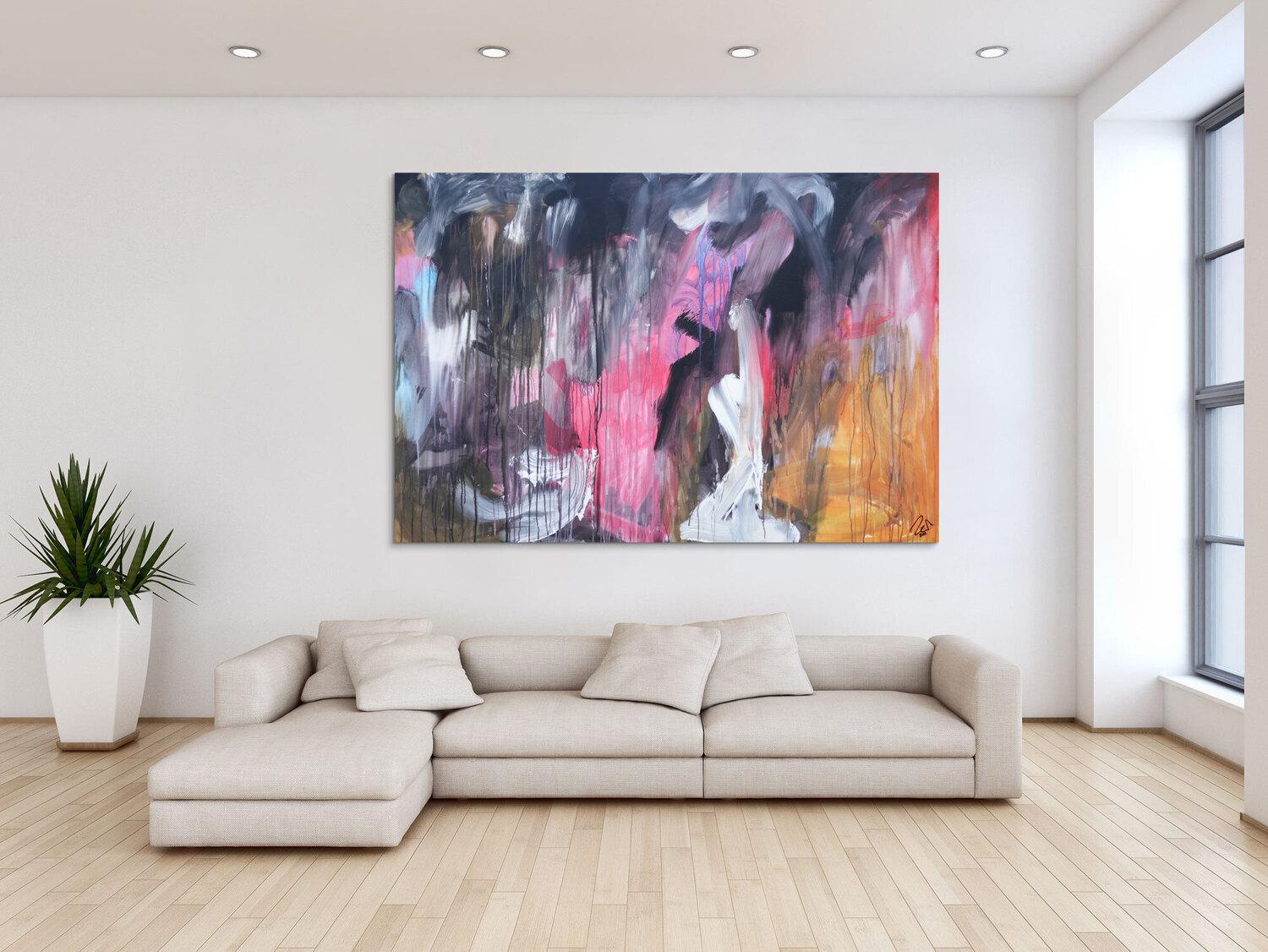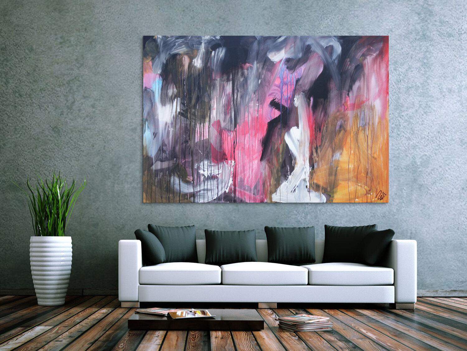 Abstraktes Gemälde auf Leinwand Abstraktes Acrylbild modern Mischtechnik pintk schwarz weiß orange zeitgenössisch in 130x190cm von Alex Zerr