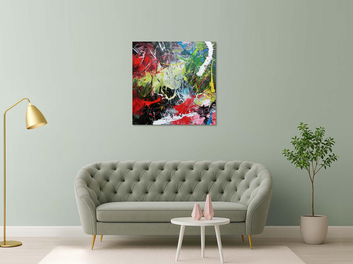 Abstraktes Acrylbild modern quadratisch zeitgenössisch bunt