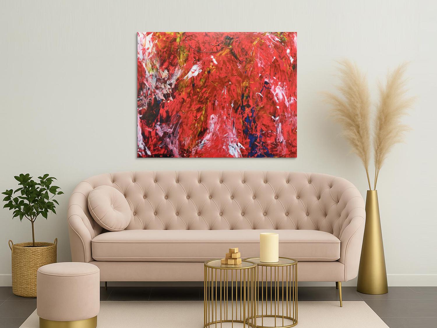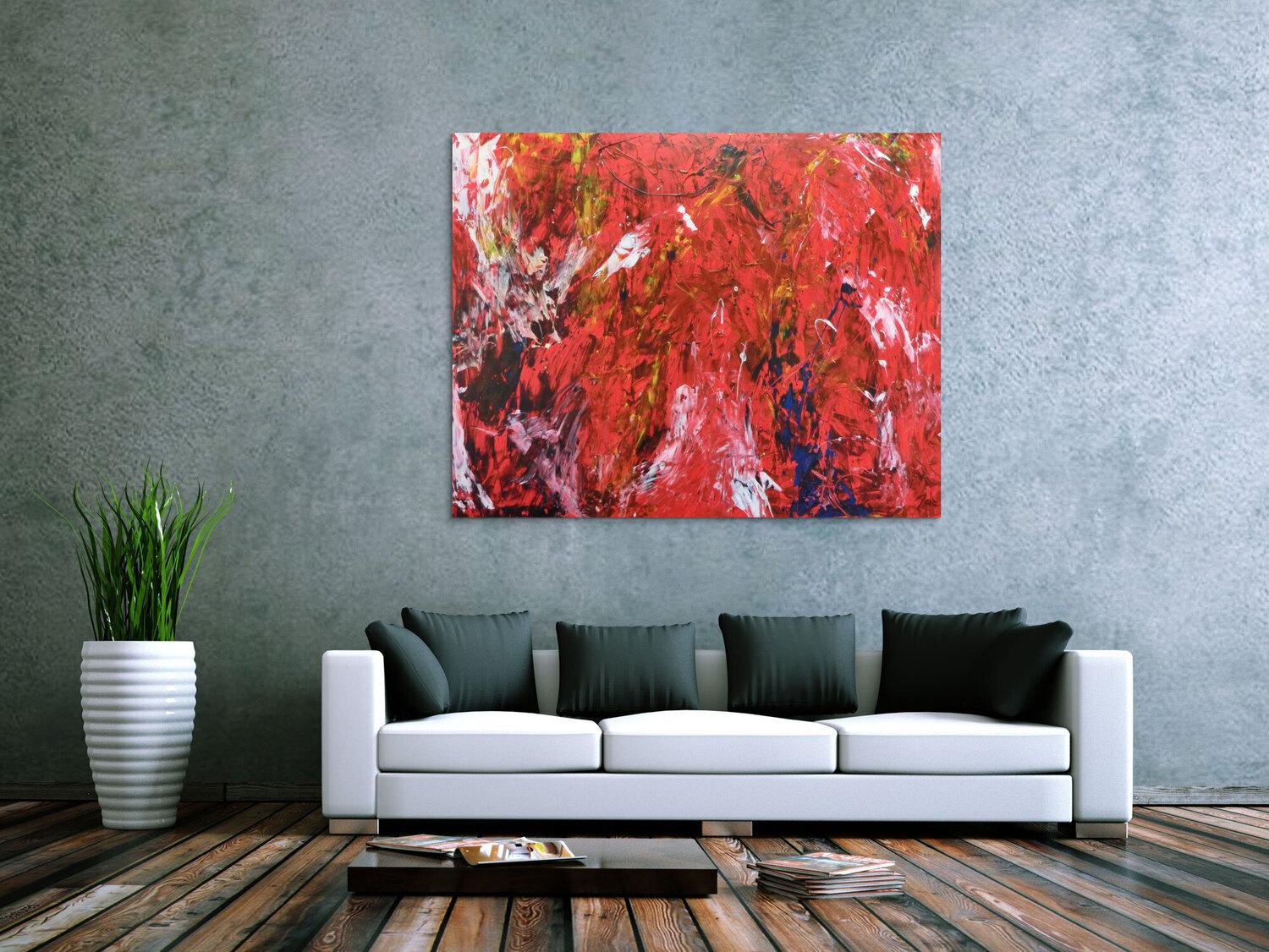 Abstraktes Gemälde auf Leinwand Abstraktes Acrylbild modern rot  in 110x140cm von Alex Zerr