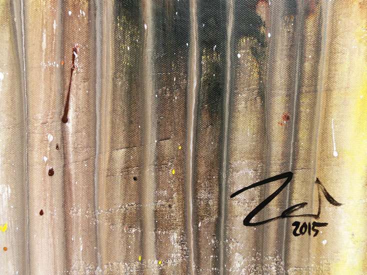 Jedes Gemälde ist auf einem massiven Keilrahmen aufgespannt, welcher speziell für große Gemälde ausgelegt ist und aus verzug sicherem keilgezinkten Holz besteht.