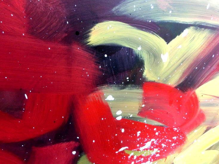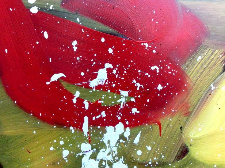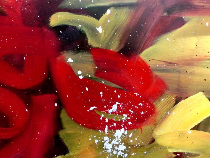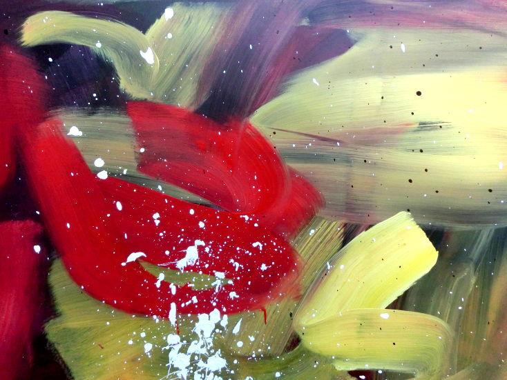 Dieses Werk ist wie alle meine Bilder: spontan entstanden, ganz intuitiv und ohne festes Konzept, und spiegelt oft meine momentane Stimmung wider wie auf der Leinwand festgehalten wurde.