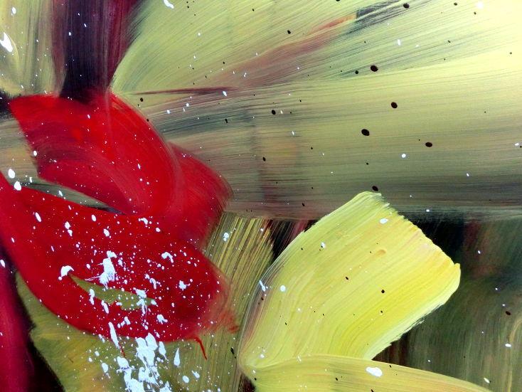 Abstraktes Acrylbild modern zeitgenössisch rot gelb braun sehr modern und schlicht