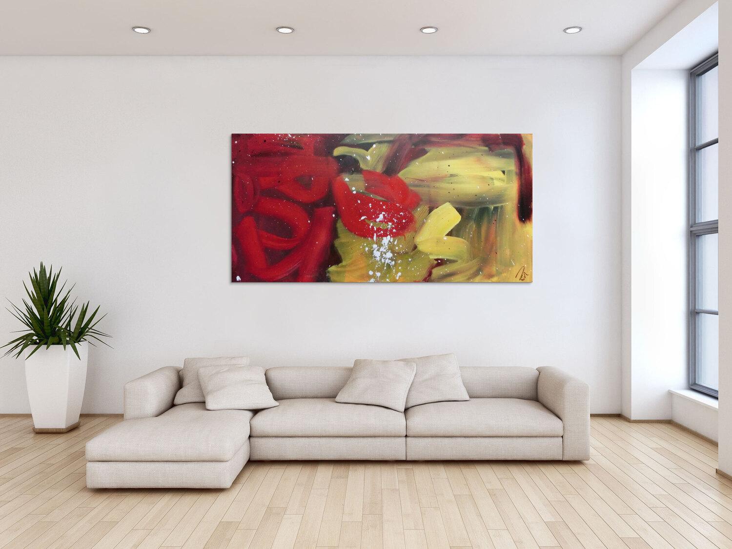 Abstraktes Gemälde auf Leinwand Abstraktes Acrylbild modern zeitgenössisch rot gelb braun sehr modern und schlicht in 90x180cm von Alex Zerr