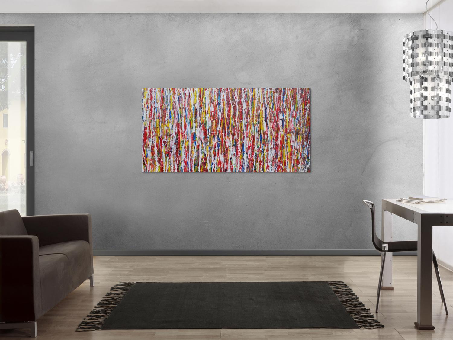 Die großformatigen, abstrakten Acrylgemälde sind ideal für Wohnzimmer, Schlafzimmer, Büros oder Geschäftsräume. Sie setzen farbenfrohe Akzente und schaffen eine lebendige, individuelle Atmosphäre die Sie und Ihre Gäste oder Kunden beeindrucken wird.