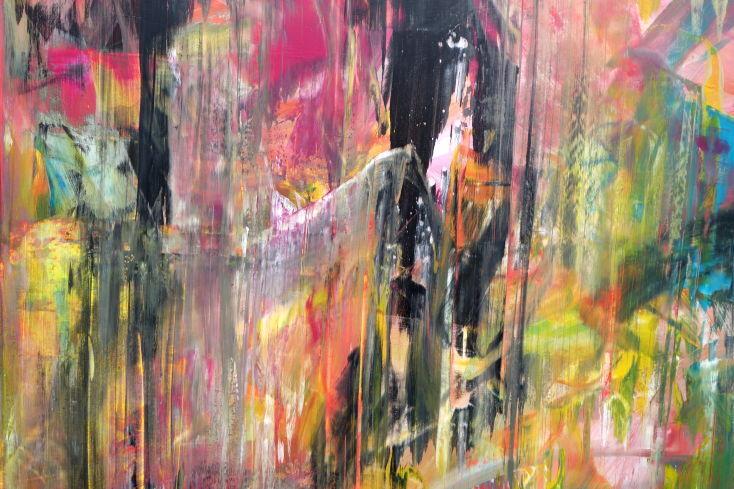 Abstraktes Acrylbild modernes Gemälde bunt helle Farben zeitgenössisch expressionistisch