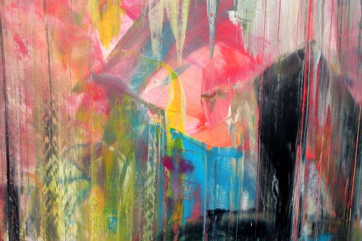 Dieses Werk ist wie alle meine Bilder: spontan entstanden, ganz intuitiv und ohne festes Konzept, und spiegelt oft meine momentane Stimmung wider wie auf der Leinwand festgehalten wurde.