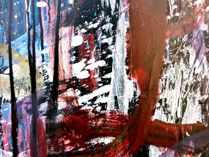 Dieses Werk ist wie alle meine Bilder: spontan entstanden, ganz intuitiv und ohne festes Konzept, und spiegelt oft meine momentane Stimmung wider wie auf der Leinwand festgehalten wurde.
