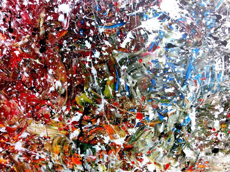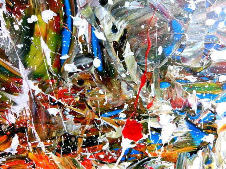Hallo, ich bin Alex Zerr, der Künstler hinter diesem Gemälde. In meinem Atelier in Bad Lippspringe erschaffe ich abstrakte Acrylbilder, überwiegend im Action-Painting-Stil. Meißtens mit Acrylfarben und auf sehr großen XXL-Leinwänden, die meinem kreativen Prozess besonders viel Freiheit erlauben und oft zu beeindruckenden Gemälden führen.