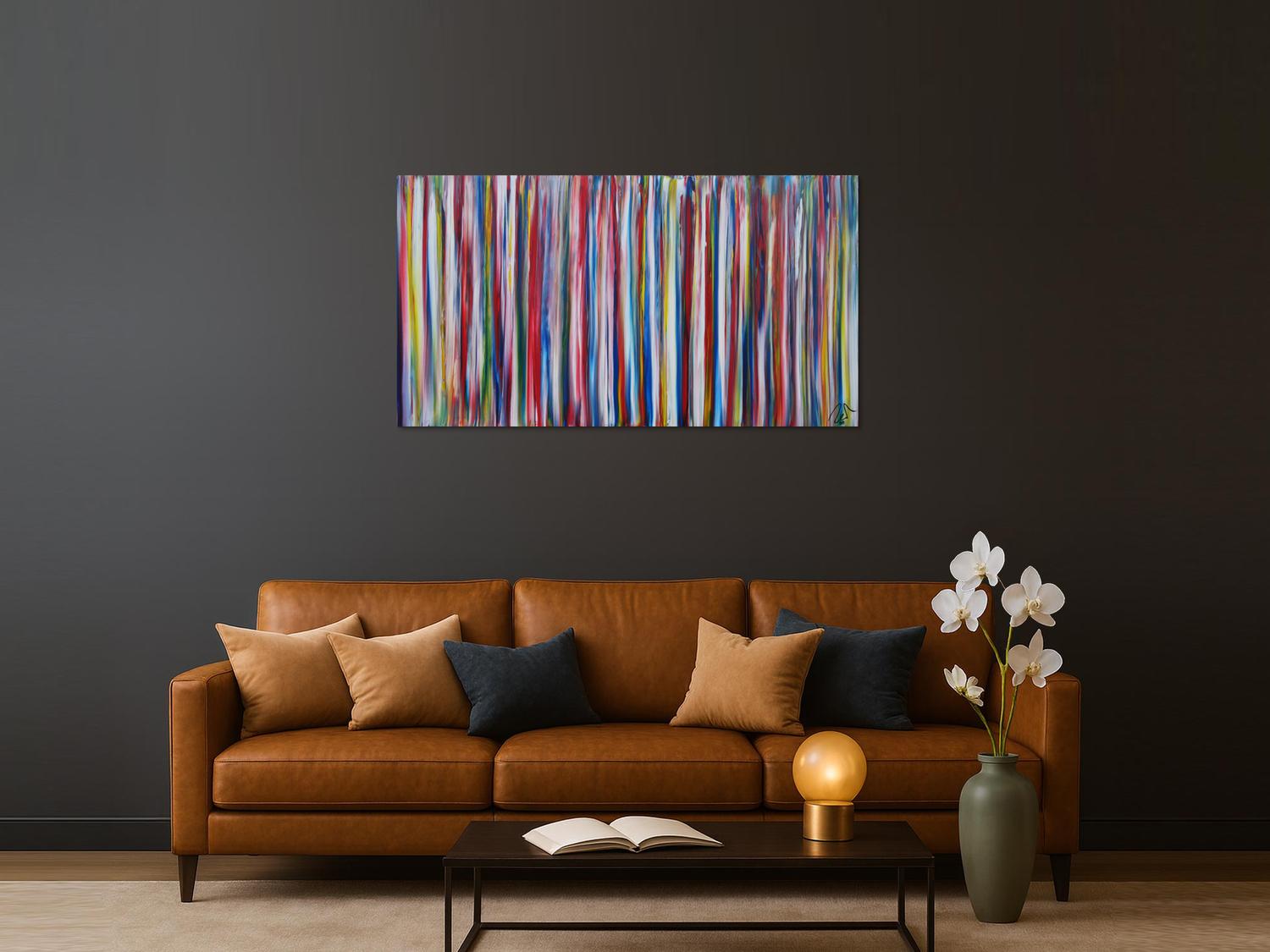 Abstraktes Gemälde auf Leinwand Abstraktes Acrylbild modernes Gemälde bunte Streifen zeitgenössisch expressionistisch in 80x150cm von Alex Zerr