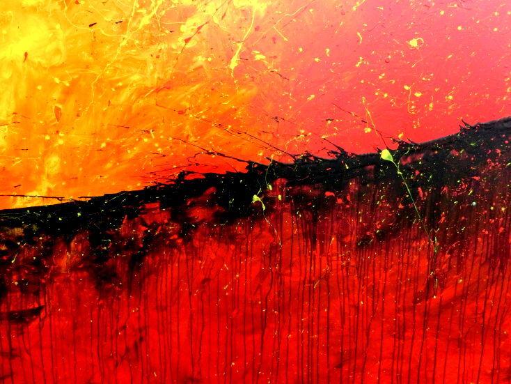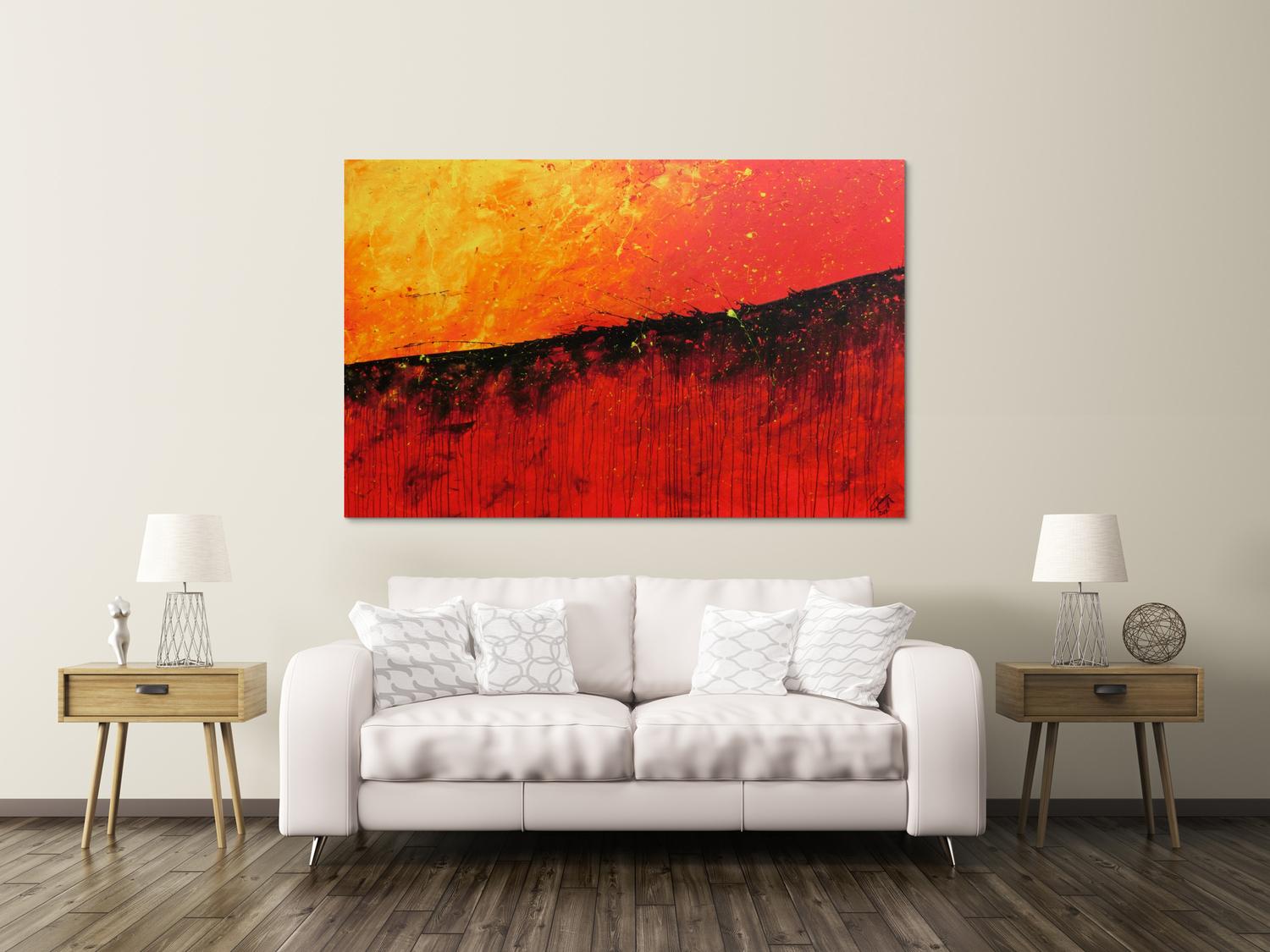 Abstraktes Gemälde auf Leinwand Abstraktes Acrylbild modernes Gemälde in rot orange und gelb in 120x180cm von Alex Zerr
