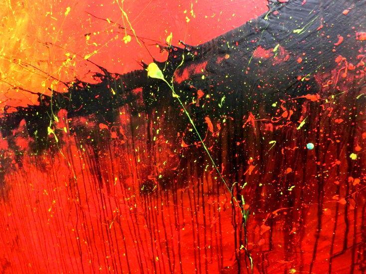Dieses abstrakte Acrylbild ist ein handgemaltes Original vom Künstler Alex Zerr aus Bad Lisppringe und ist im Jahr 2017 in seinem Atelier entstanden. Das Bild hat eine Größe von 120x180cm und ist bereits auf einem hochwertigen und stabilem Rahmen aufgespannt. Dadurch kann das Bild nach der Lieferung direkt an die Wand gehängt werden und sofort in Ihrem Raum wirken. Alle Seiten des Gemäldes sind passend zum Motiv bemalt, so dass kein zusätzlicher Rahmen benötigt wird.