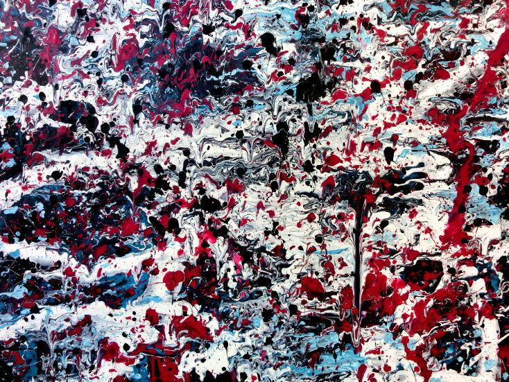 Hallo, ich bin Alex Zerr, der Künstler hinter diesem Gemälde. In meinem Atelier in Bad Lippspringe erschaffe ich abstrakte Acrylbilder, überwiegend im Action-Painting-Stil. Meißtens mit Acrylfarben und auf sehr großen XXL-Leinwänden, die meinem kreativen Prozess besonders viel Freiheit erlauben und oft zu beeindruckenden Gemälden führen.