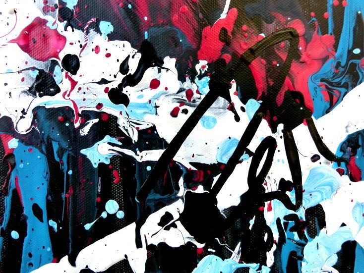 Abstraktes Acrylbild modernes Gemälde in türlis oink schwarz weiß Actionpainting